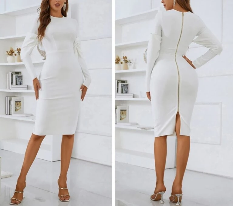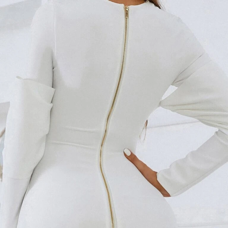 Step into autumn with sophistication in our Autumn New Solid Color High Stretch Long Sleeve Crew Neck Zip-Up Slit Stylish Midi Dress. Crafted for style and comfort, this high-quality midi dress features a flattering crew neck, long sleeves, and a sleek zip-up design.