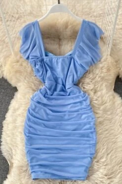 Summer New Style Solid Color Sling Cutout Pleated Tight Stretch Mini Dress Wholesale Bodycon Dresses