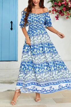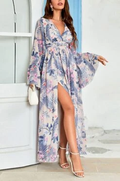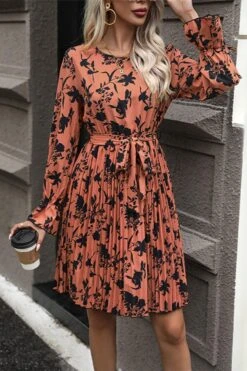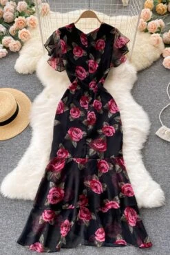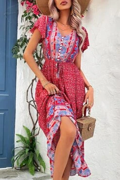 Non-stretch Floral Printing Tied Backless Zip-up Casual Vacation Midi Dress Wholesale Floral Dresses