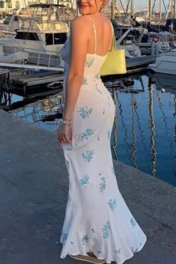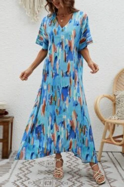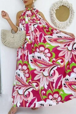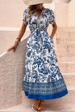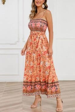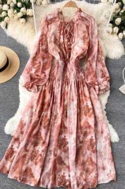Casual Chiffon Slight stretch Tie-dye Batch printing Shirring Waist Maxi Dress Wholesale Maxi&Gown