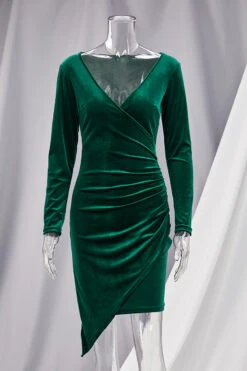 Autumn New Solid Color Pleuche Fabric Stretch V-neck Irregular Hem Sexy Bodycon Mini Dress Wholesale