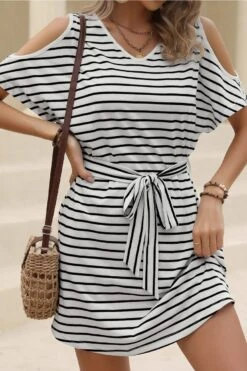 Casual L-4xl Plus Size Stripe Printing Slight Stretch Pocket Loose Mini Dress Wholesale Mini Dresses