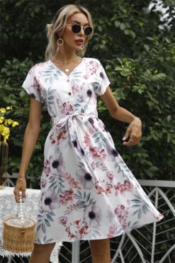 Plus Size Long Sleeve Summer Single Breasted Inelastic Newspaper Batch Printing Mini Dress Wholesale