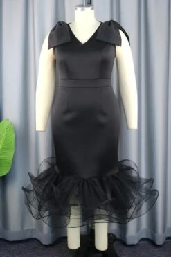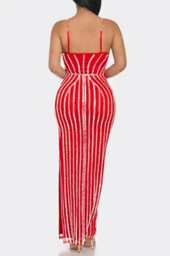 Sexy Plus Size Slight Stretch Pearl Rhinestone Mesh Stitching Slit Midi Dress Wholesale Sexy Dresses