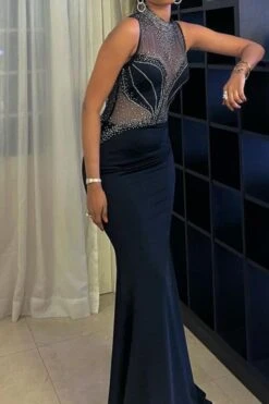 Sexy Plus Size Slight stretch Rhinestone Sequins High Slit Zip-up Maxi Dress Wholesale Sexy Dresses