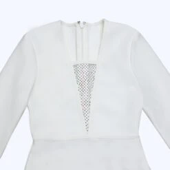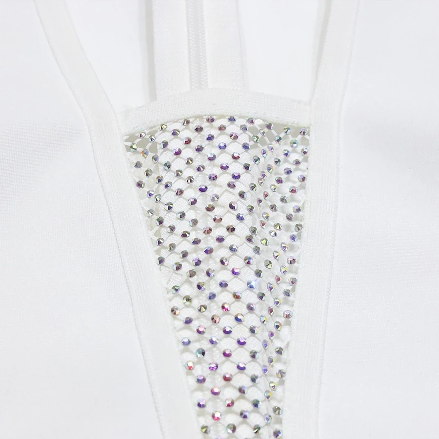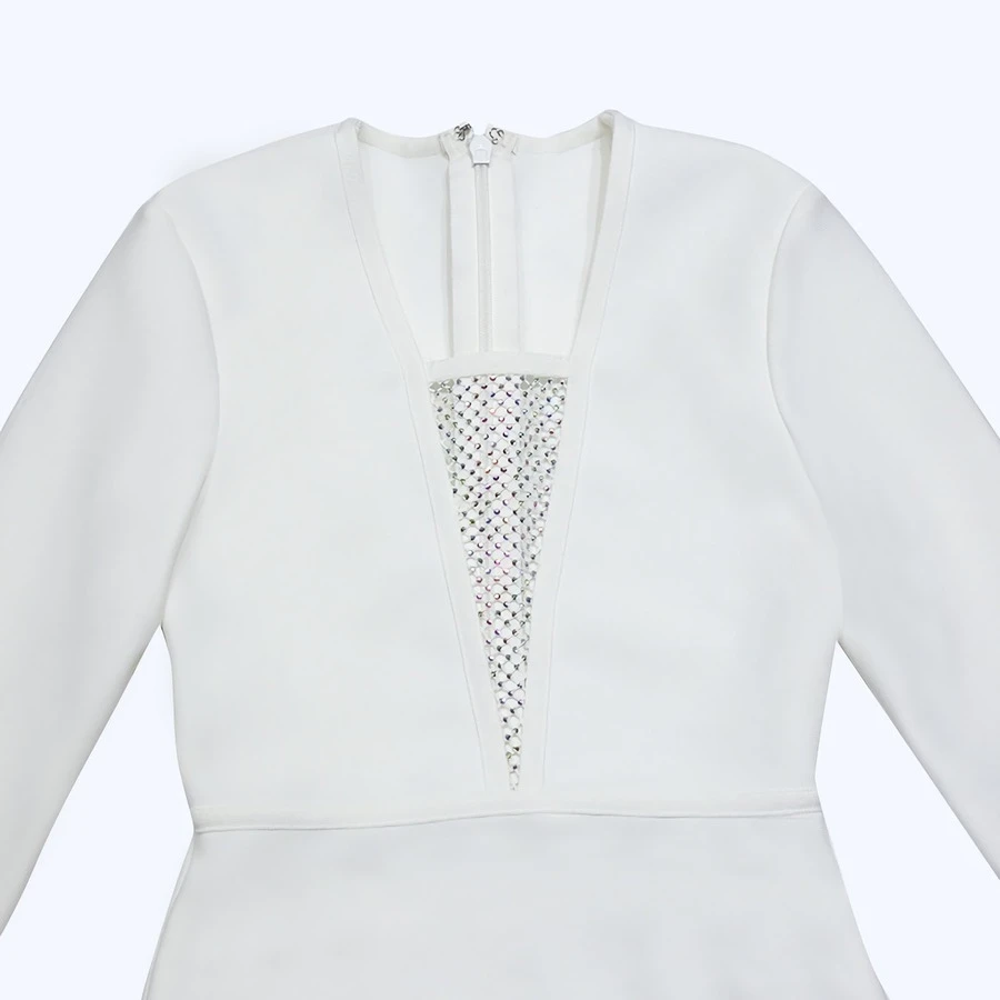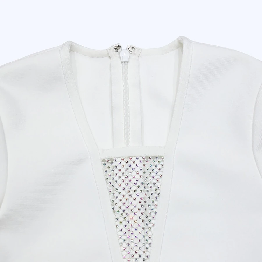 Autumn new mesh patchwork stretch long sleeve rhinestone feather decor bodycon stylish high quality sexy mini dress