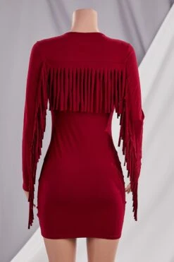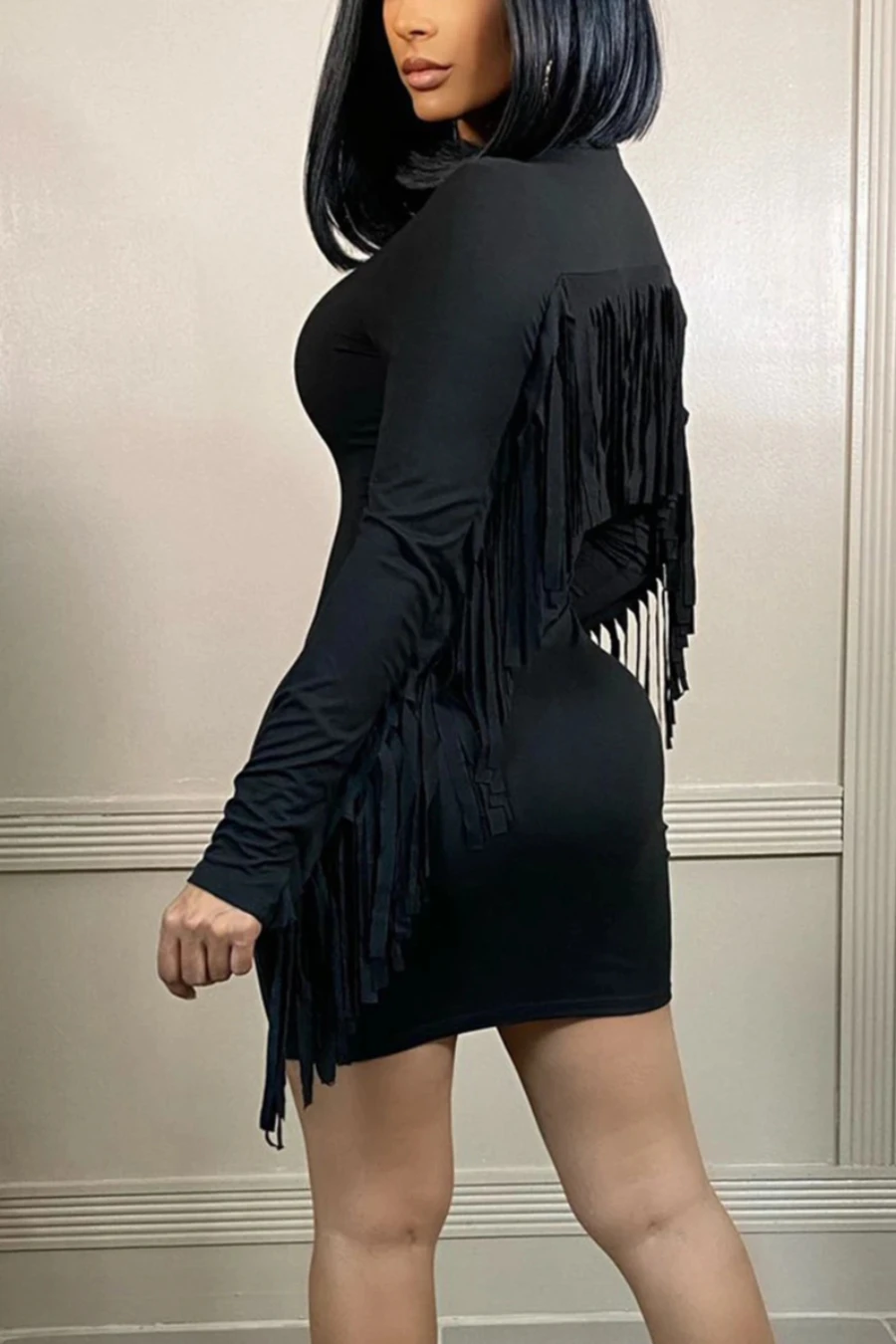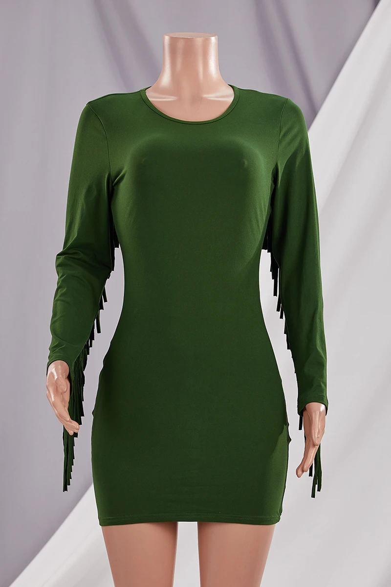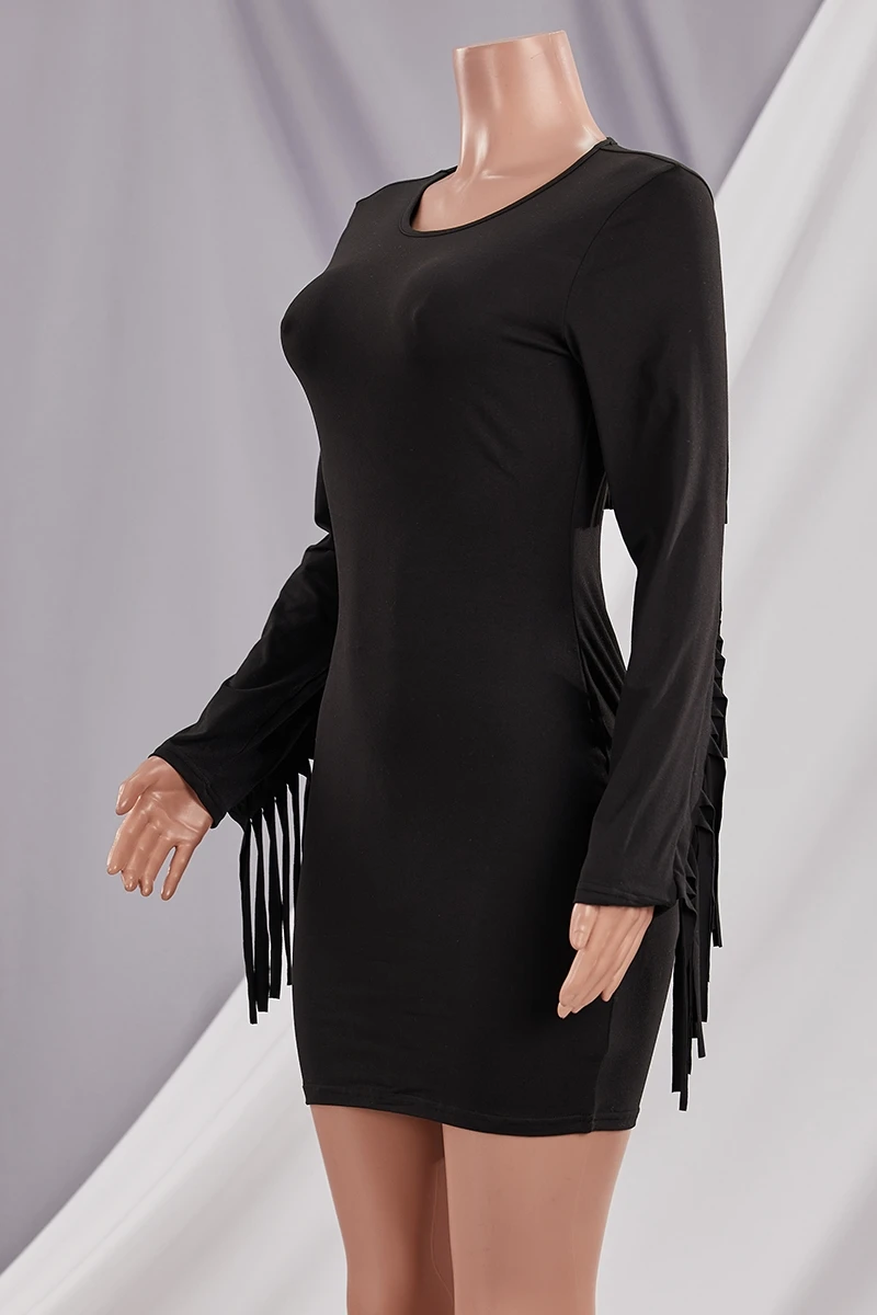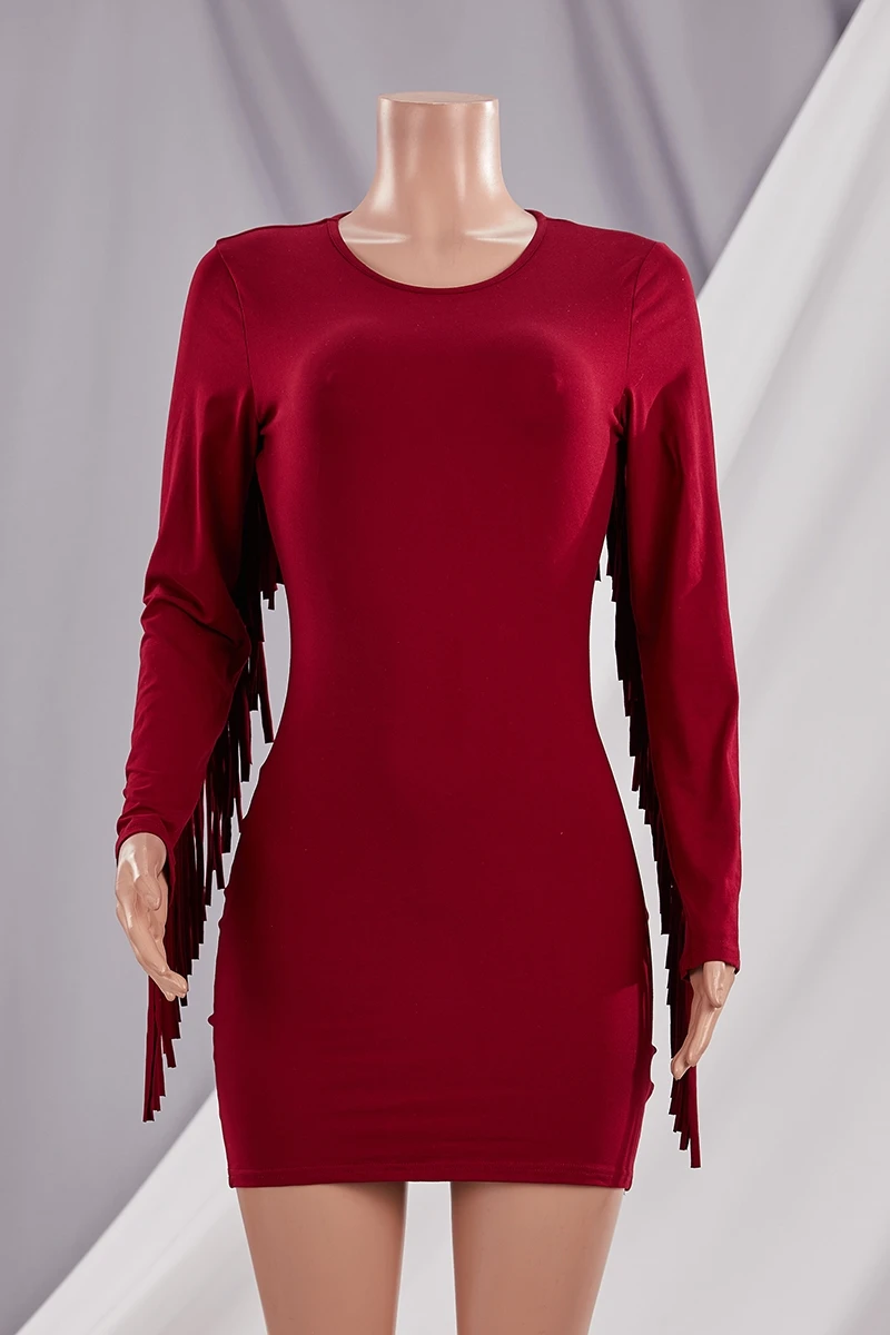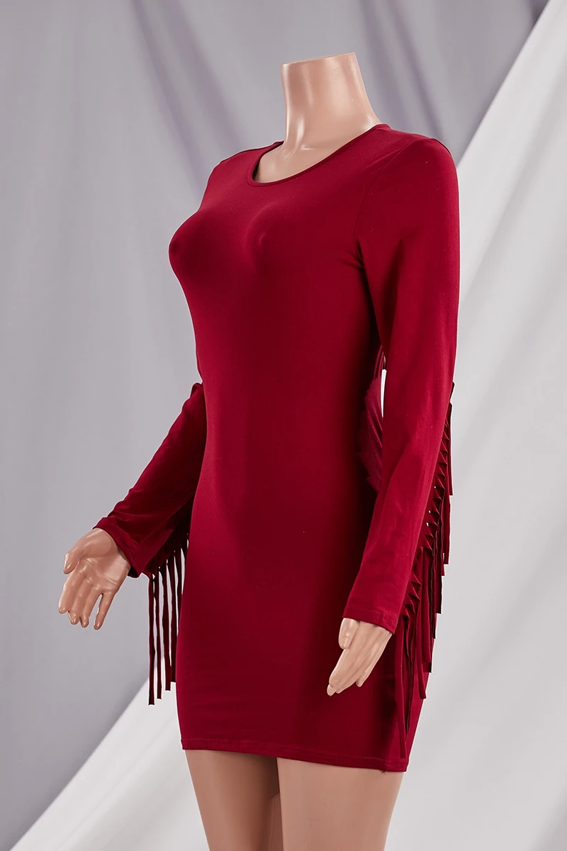 Autumn new plus size solid color stretch tassel stylish bodycon mini dress