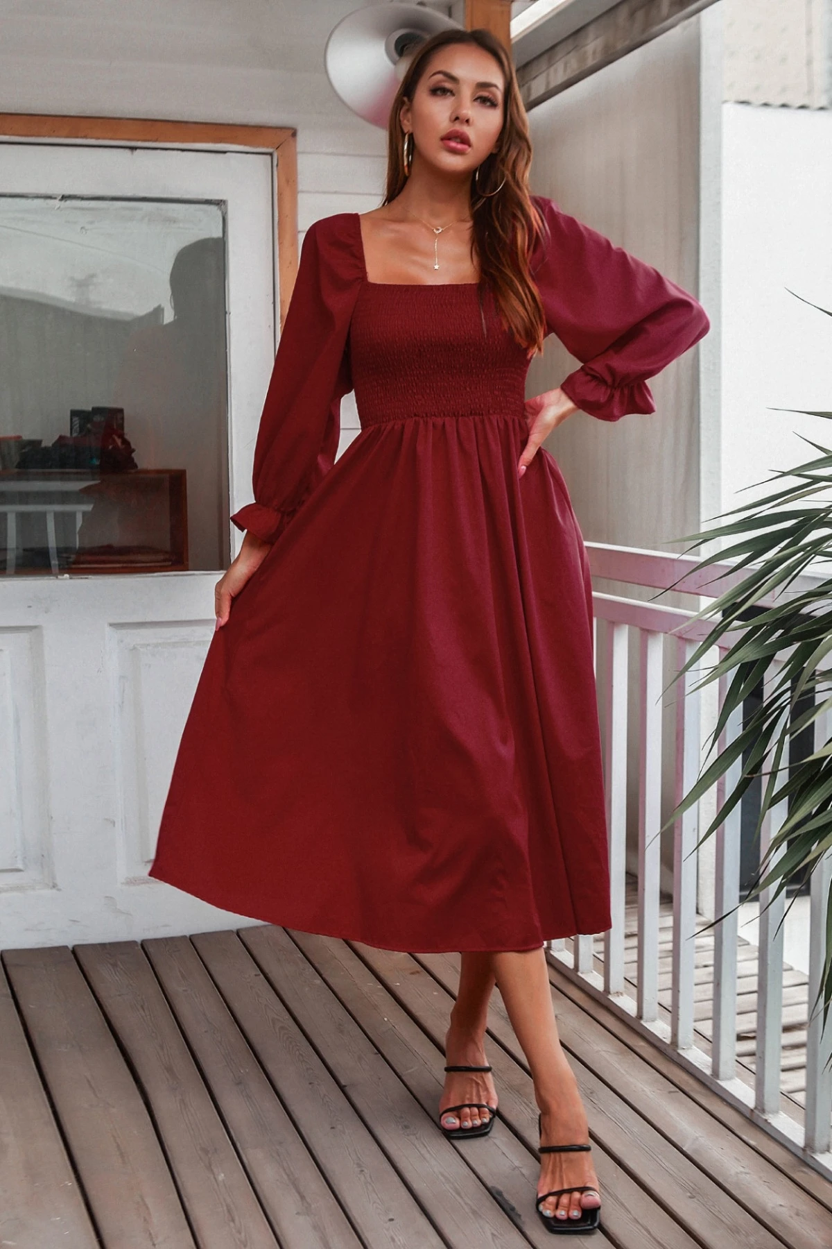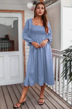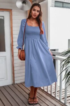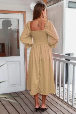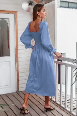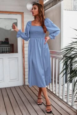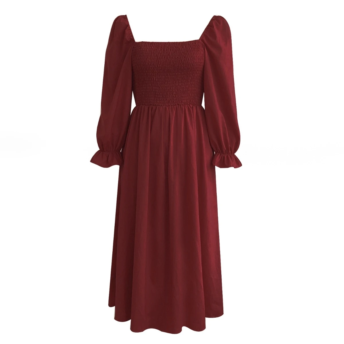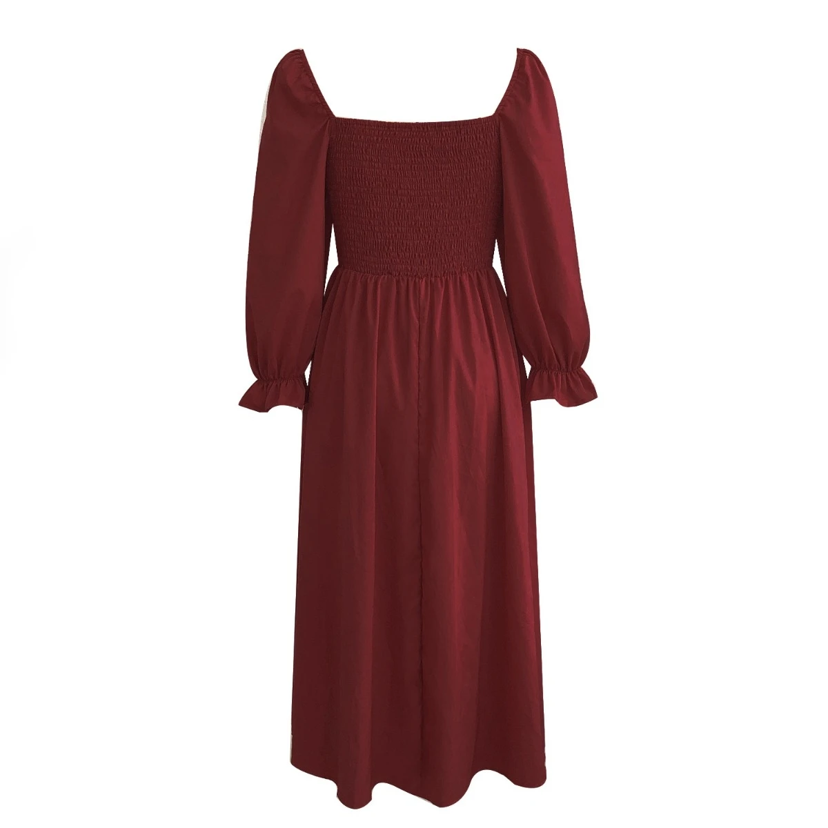 Autumn new solid color inelastic square-neck backless stylish casual midi dress