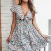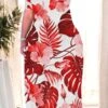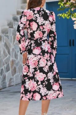 Autumn new stylish flower batch printing non-stretch plus size lace-up irregular slit v neck casual midi dress