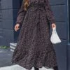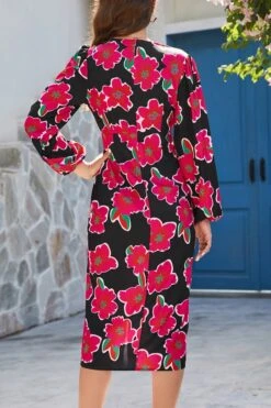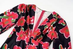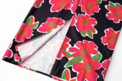 Autumn new stylish flower batch printing zip-up v neck slit plus size non-stretch single-breasted sexy midi dress
