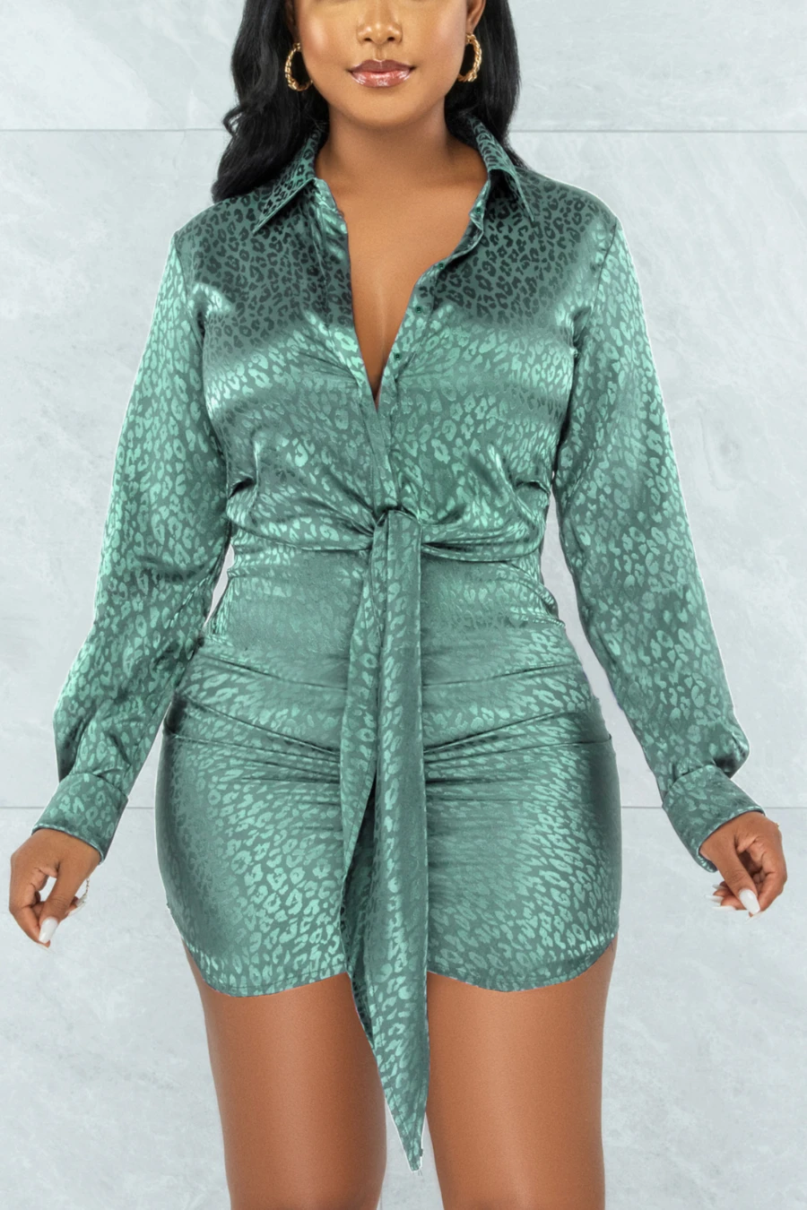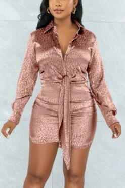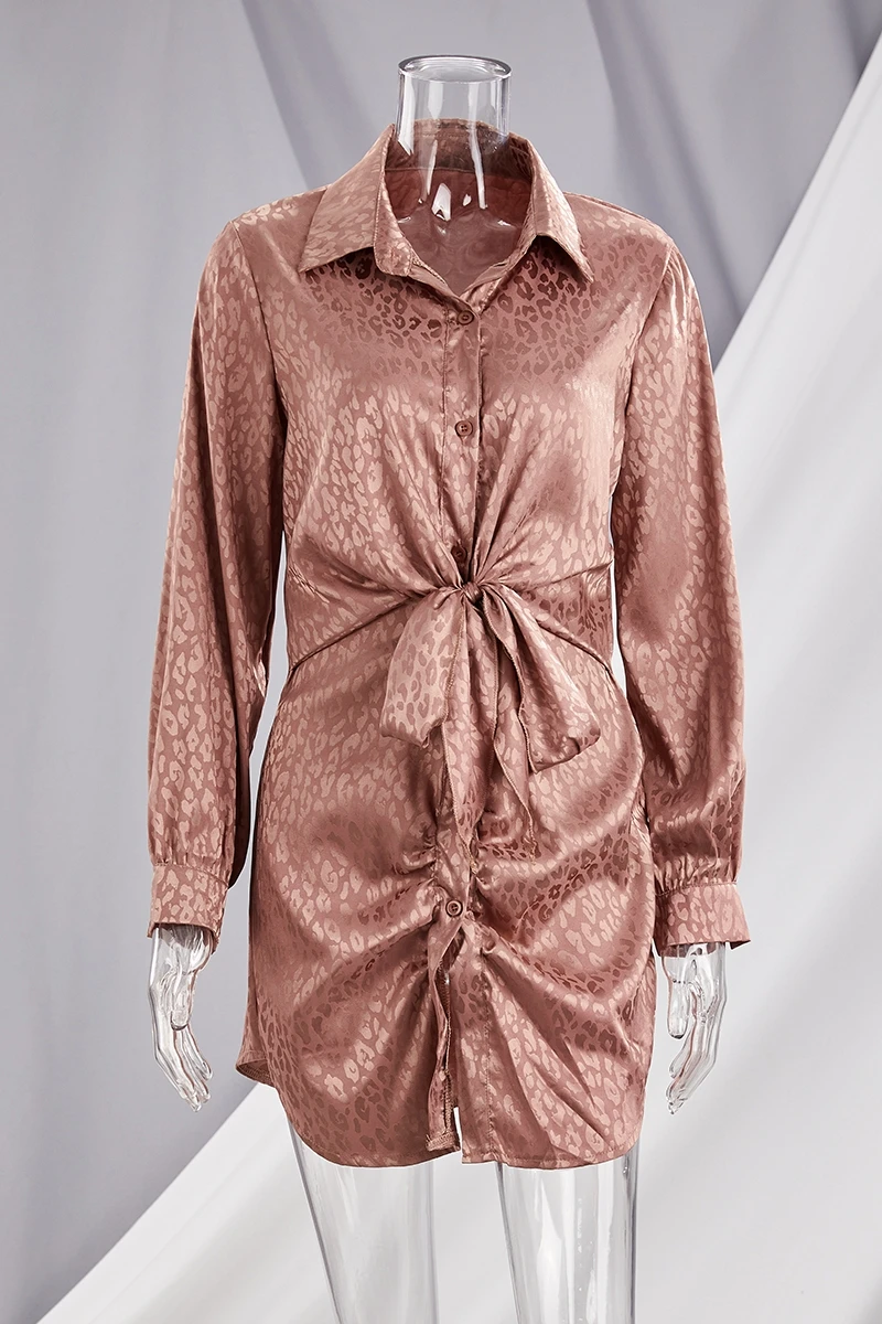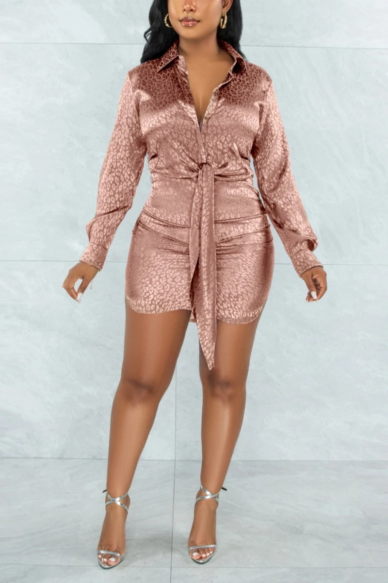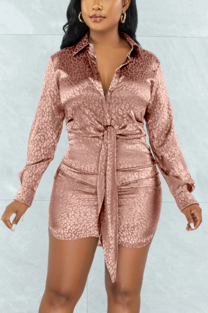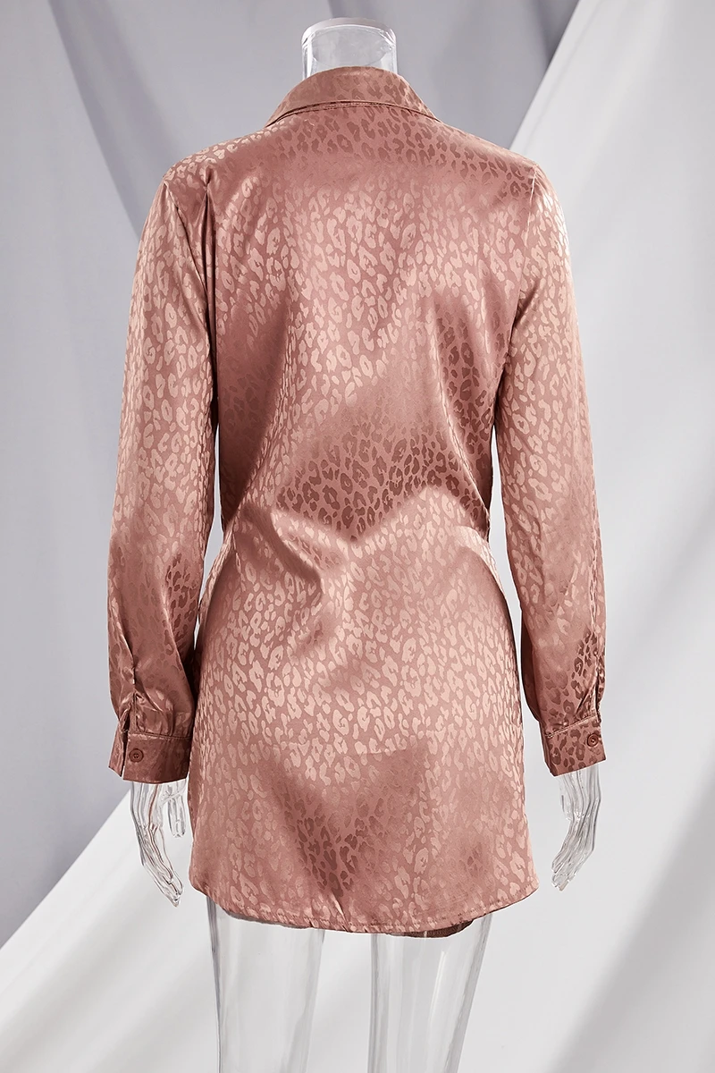 Autumn new stylish leopard batch printing plus size single-breasted inelastic sexy mini dress