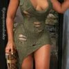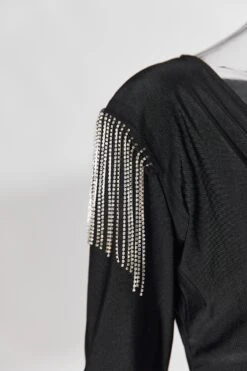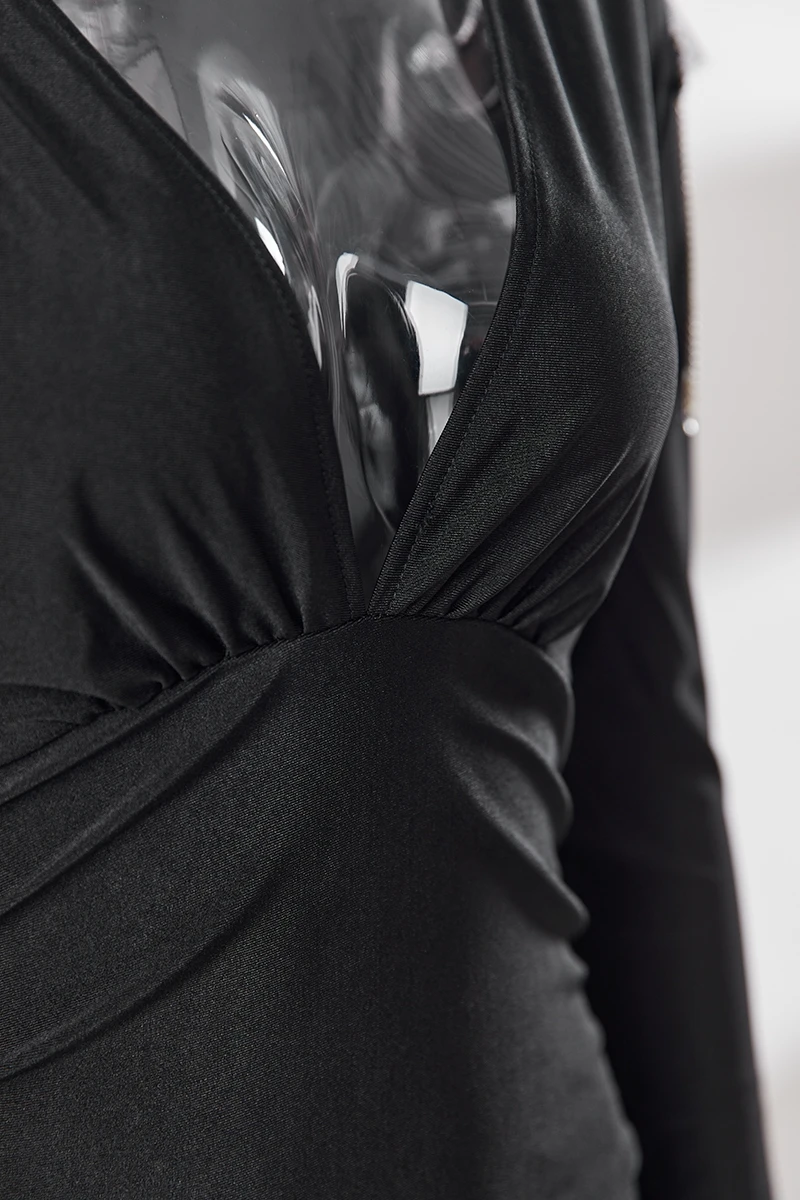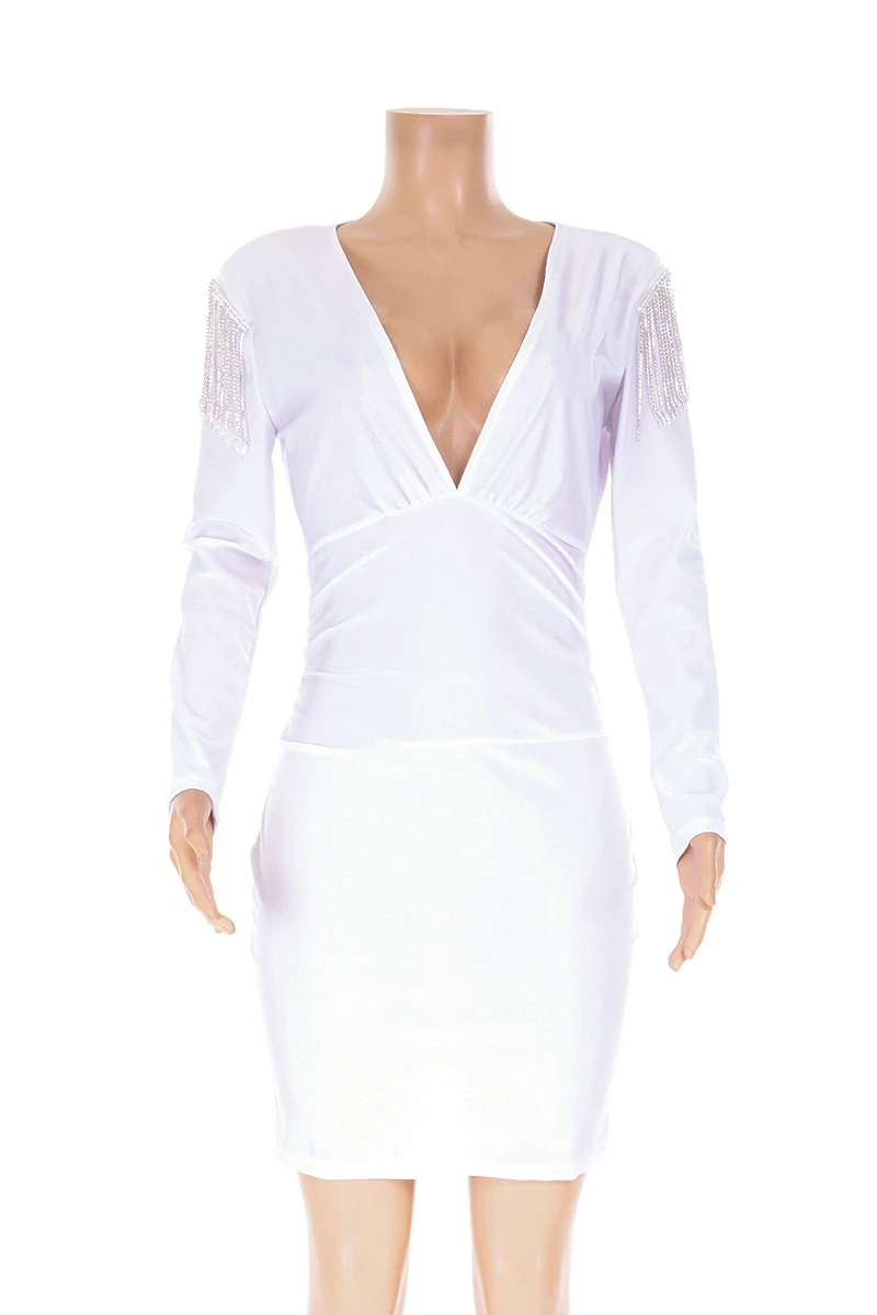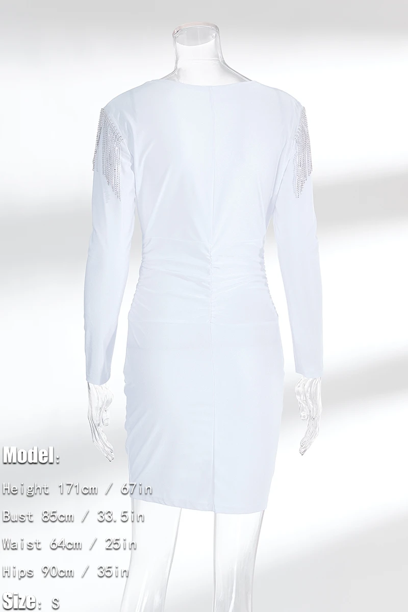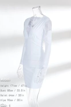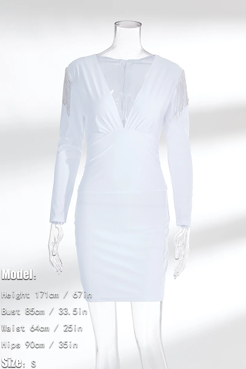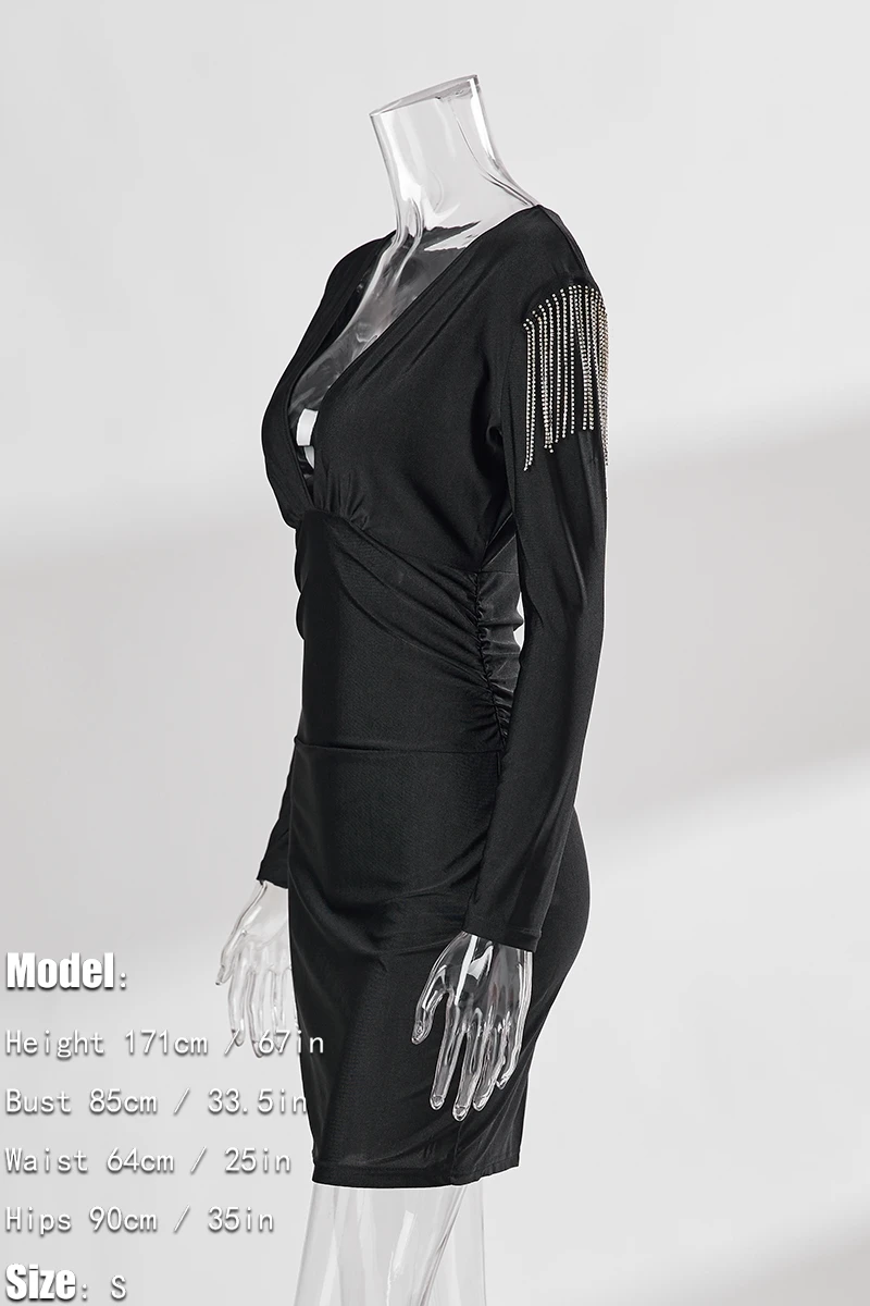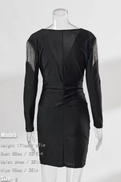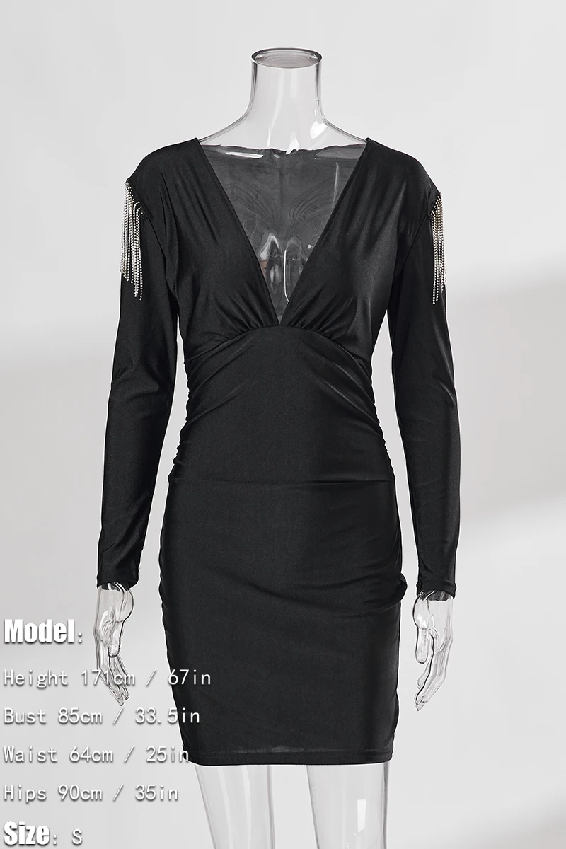 Autumn new stylish solid color slim fit stretch tassel v neck dress