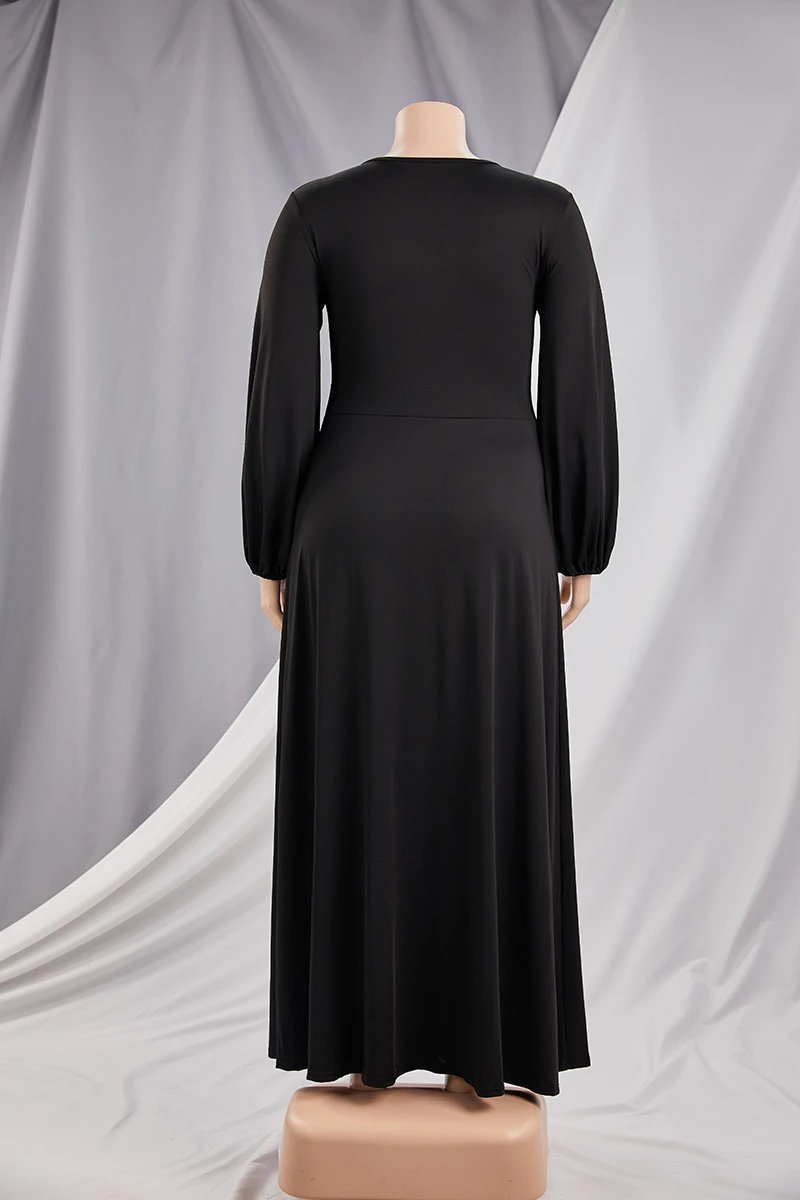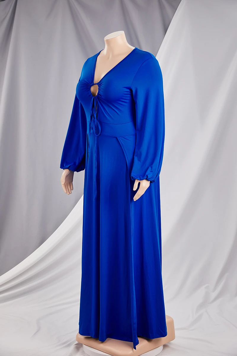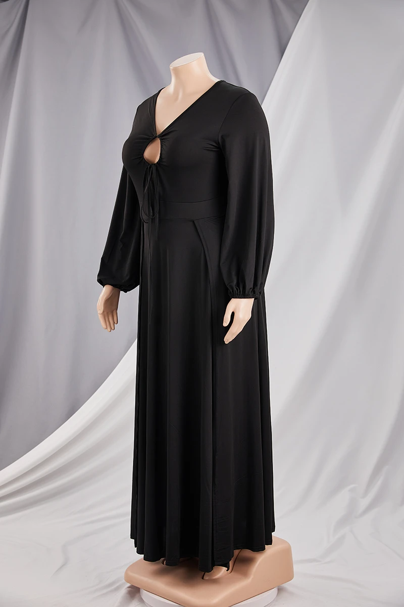 Autumn solid color 4 colors plus size L-4XL new stylish stretch hollow out high slit maxi dress