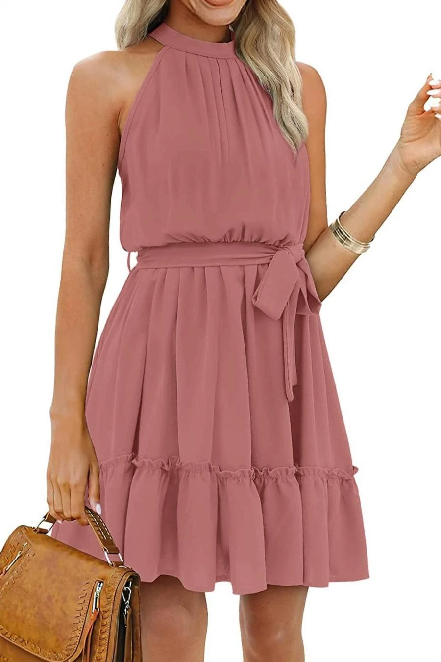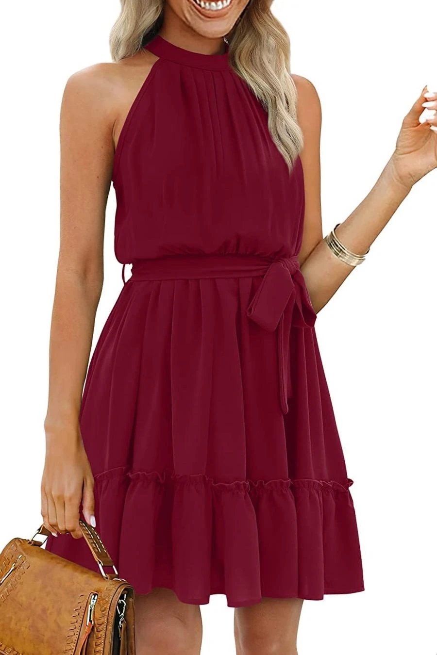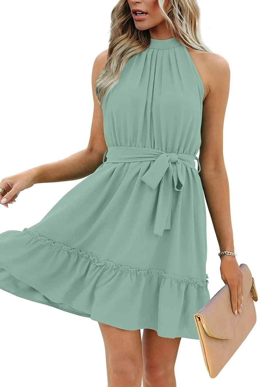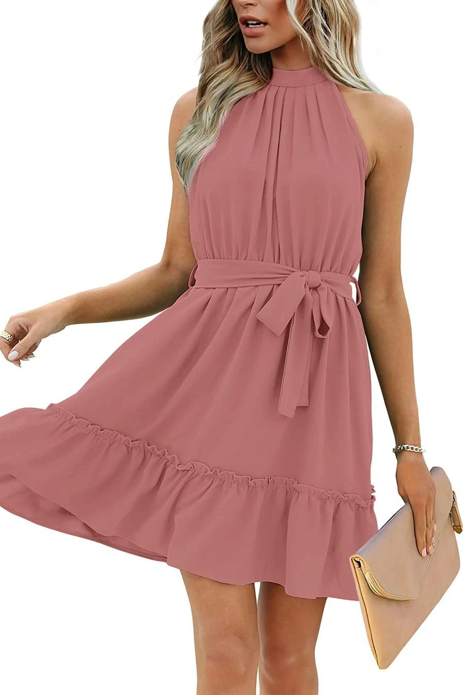 Casual non-stretch chiffon 5 colors mini dress with belt