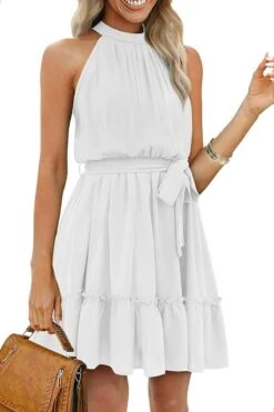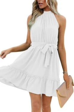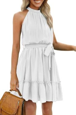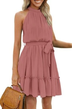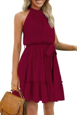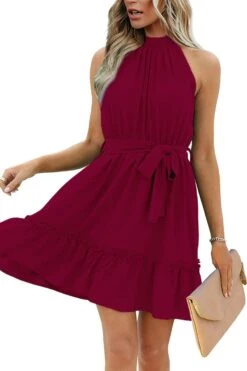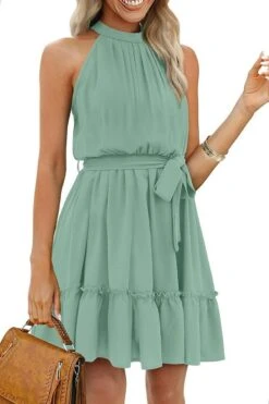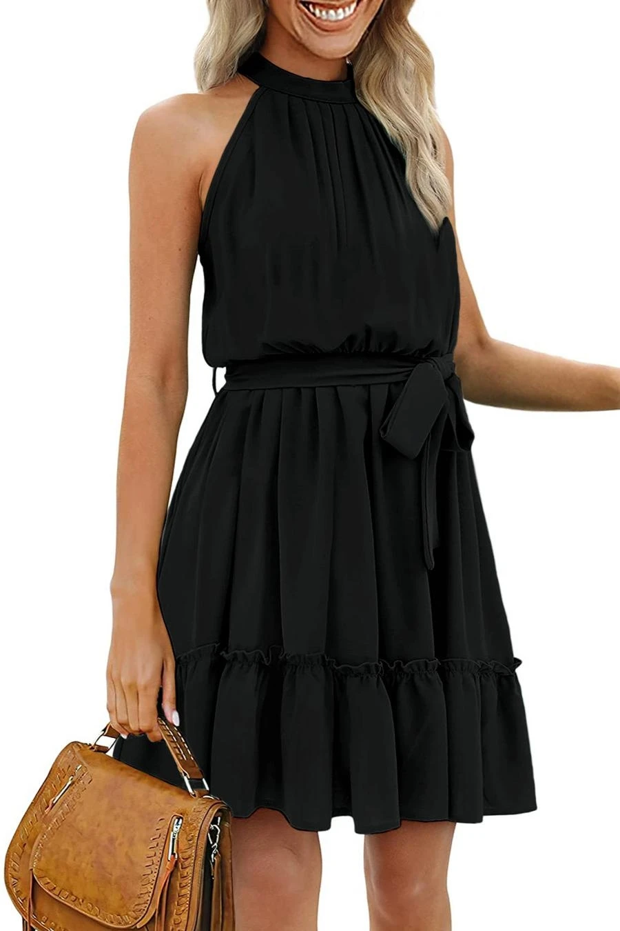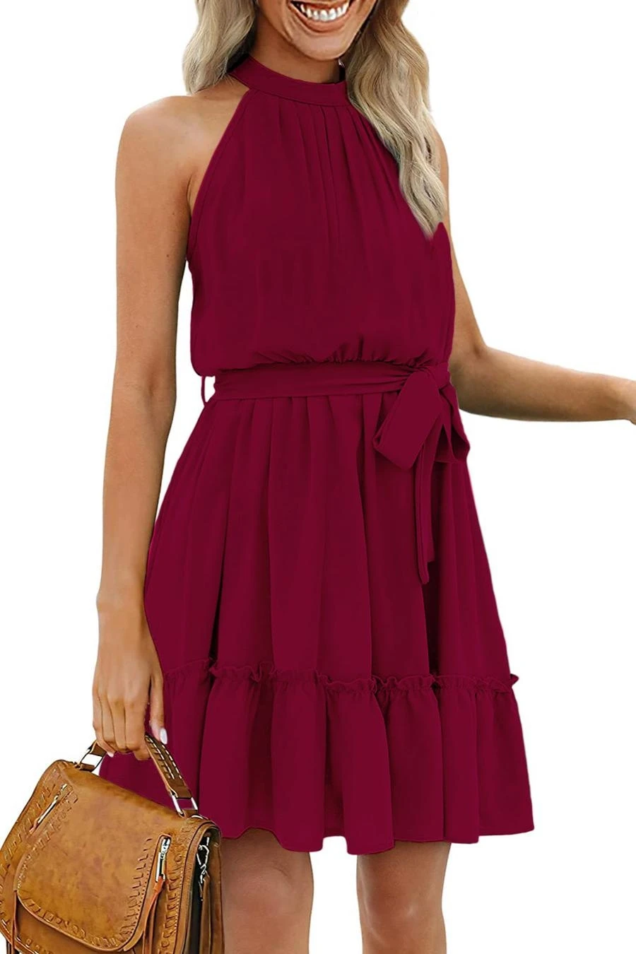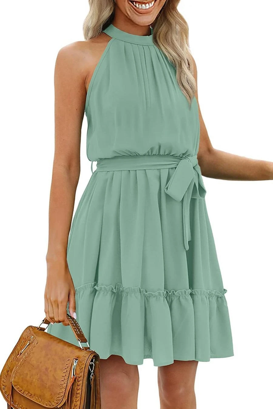Casual non-stretch chiffon 5 colors mini dress with belt
