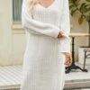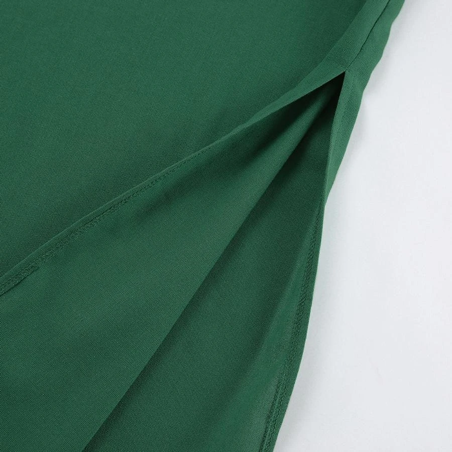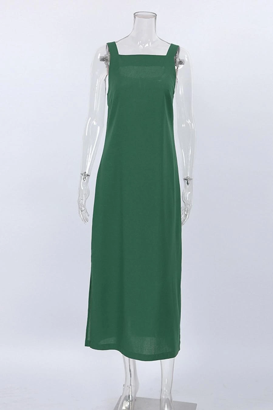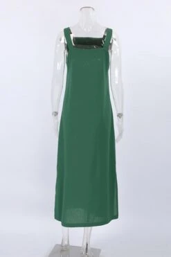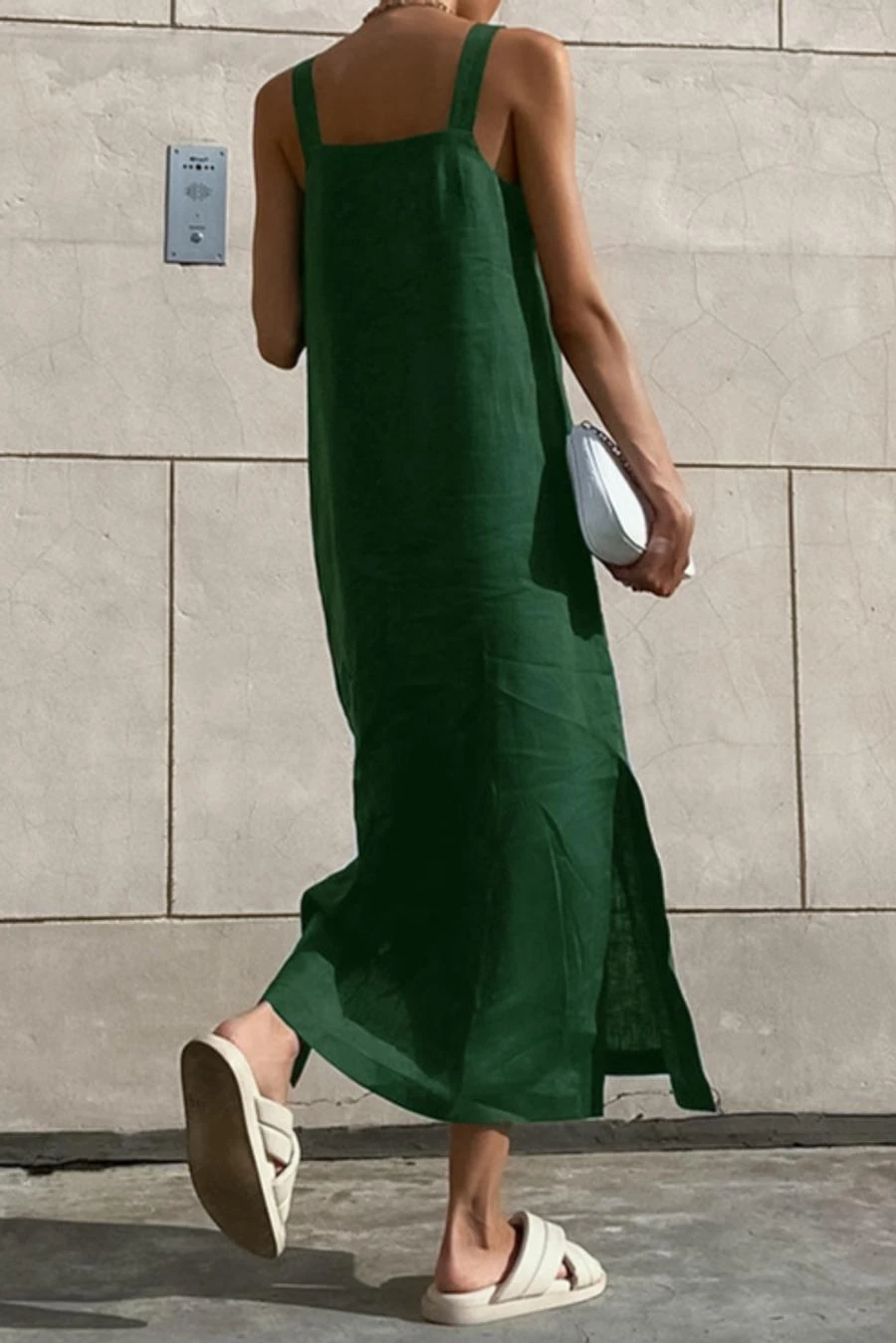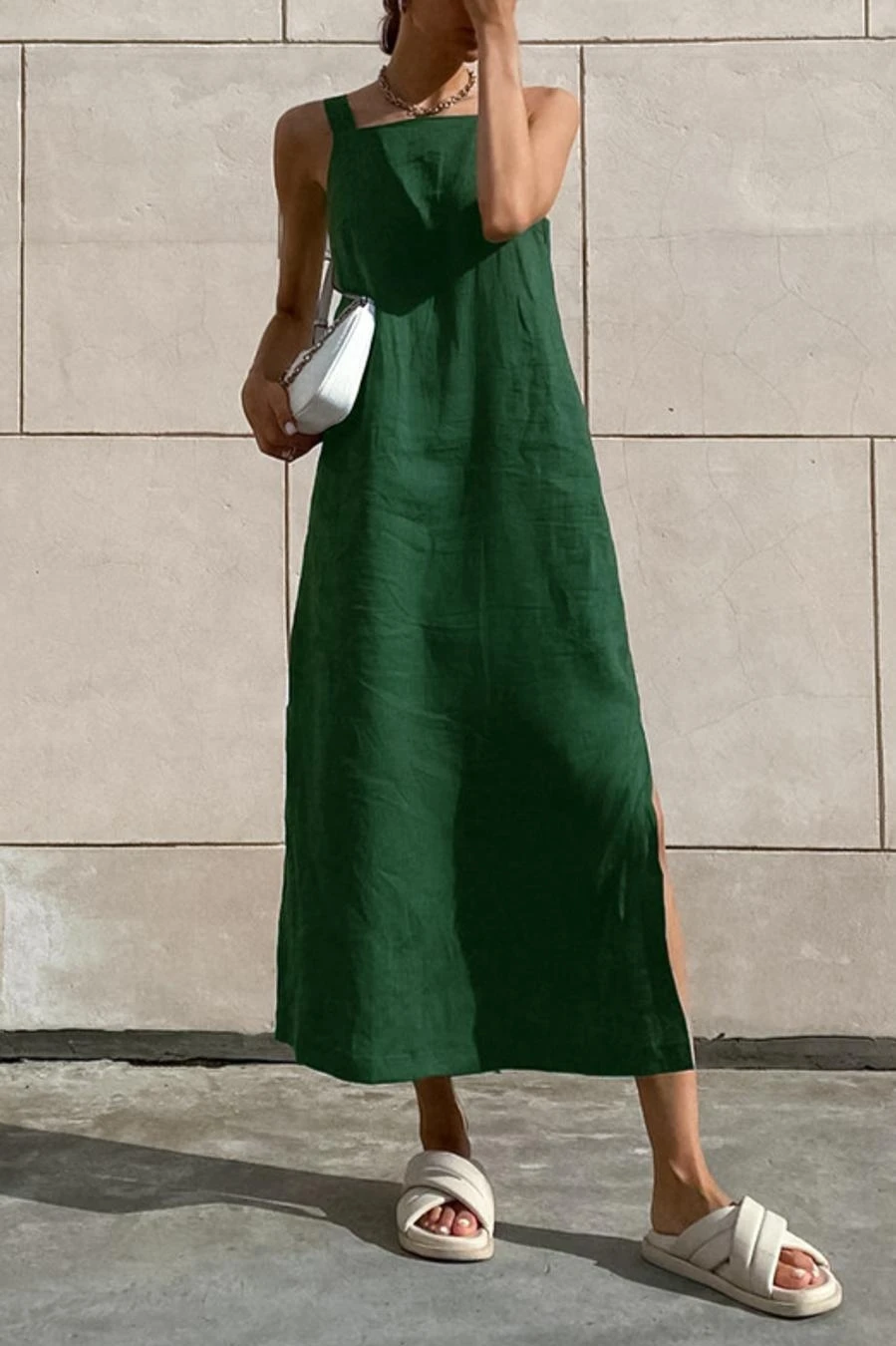 Casual non-stretch cotton linen fabric pure color slit side midi dress