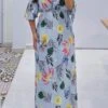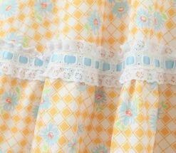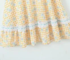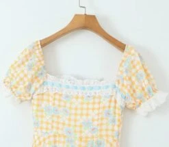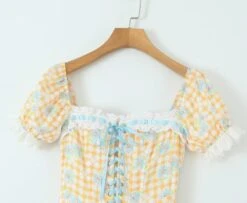 Casual non-stretch lattice flower printing square neck midi dress size run small