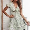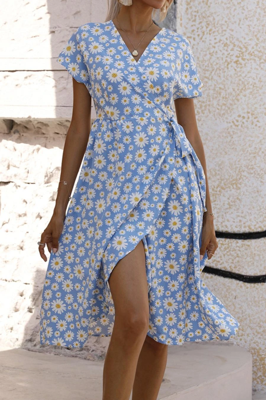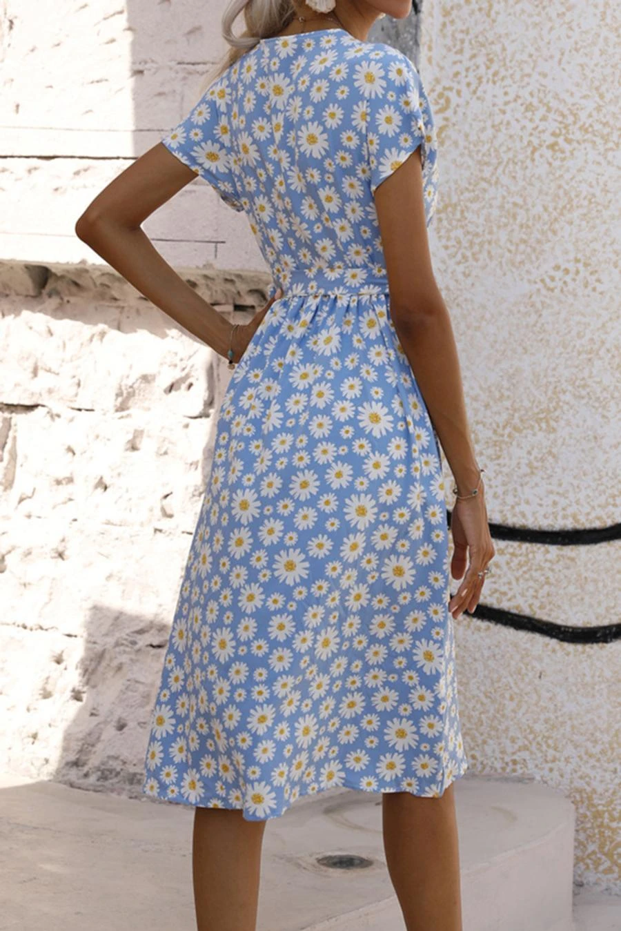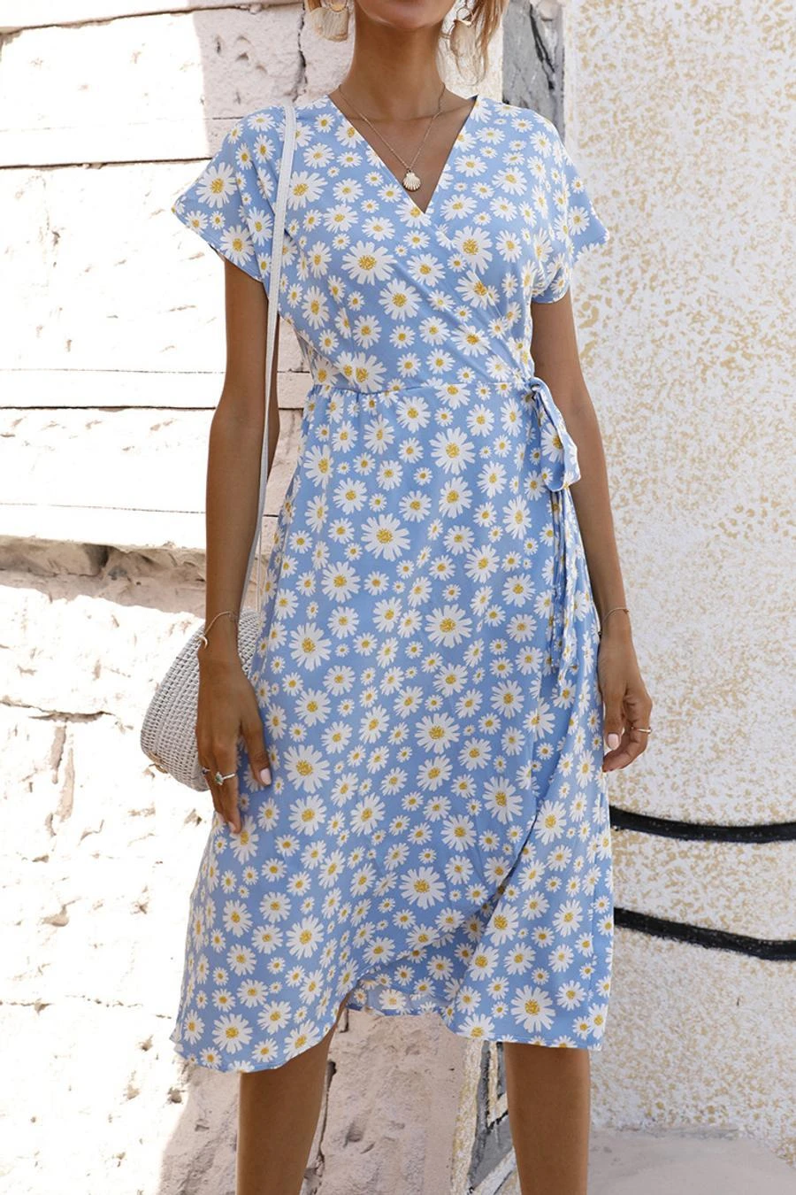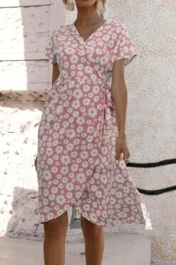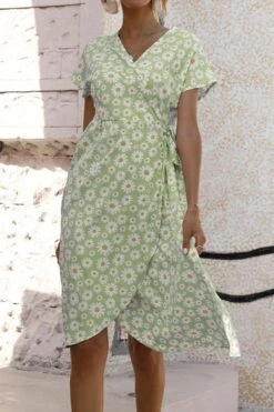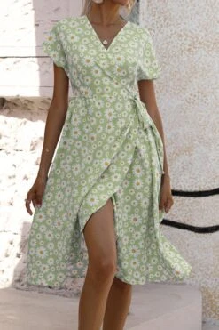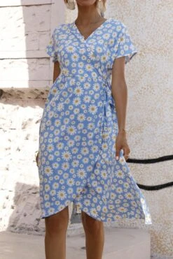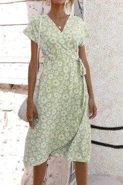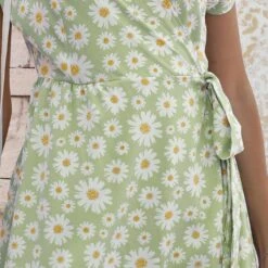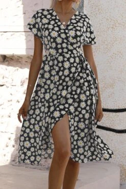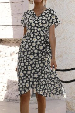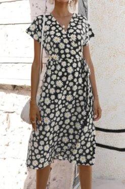 Casual plus size non-stretch 4-colors daisy print midi dress