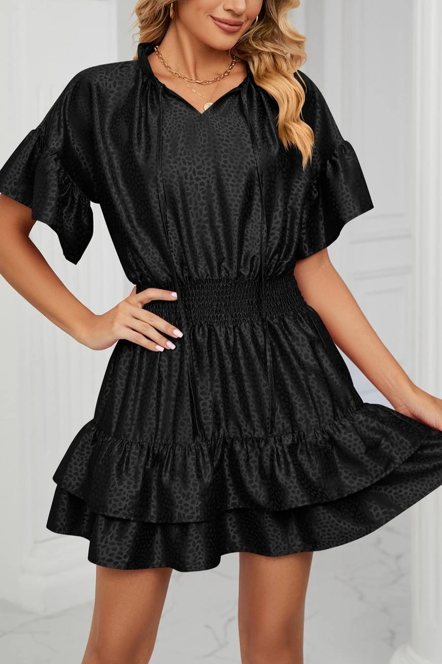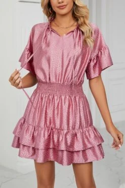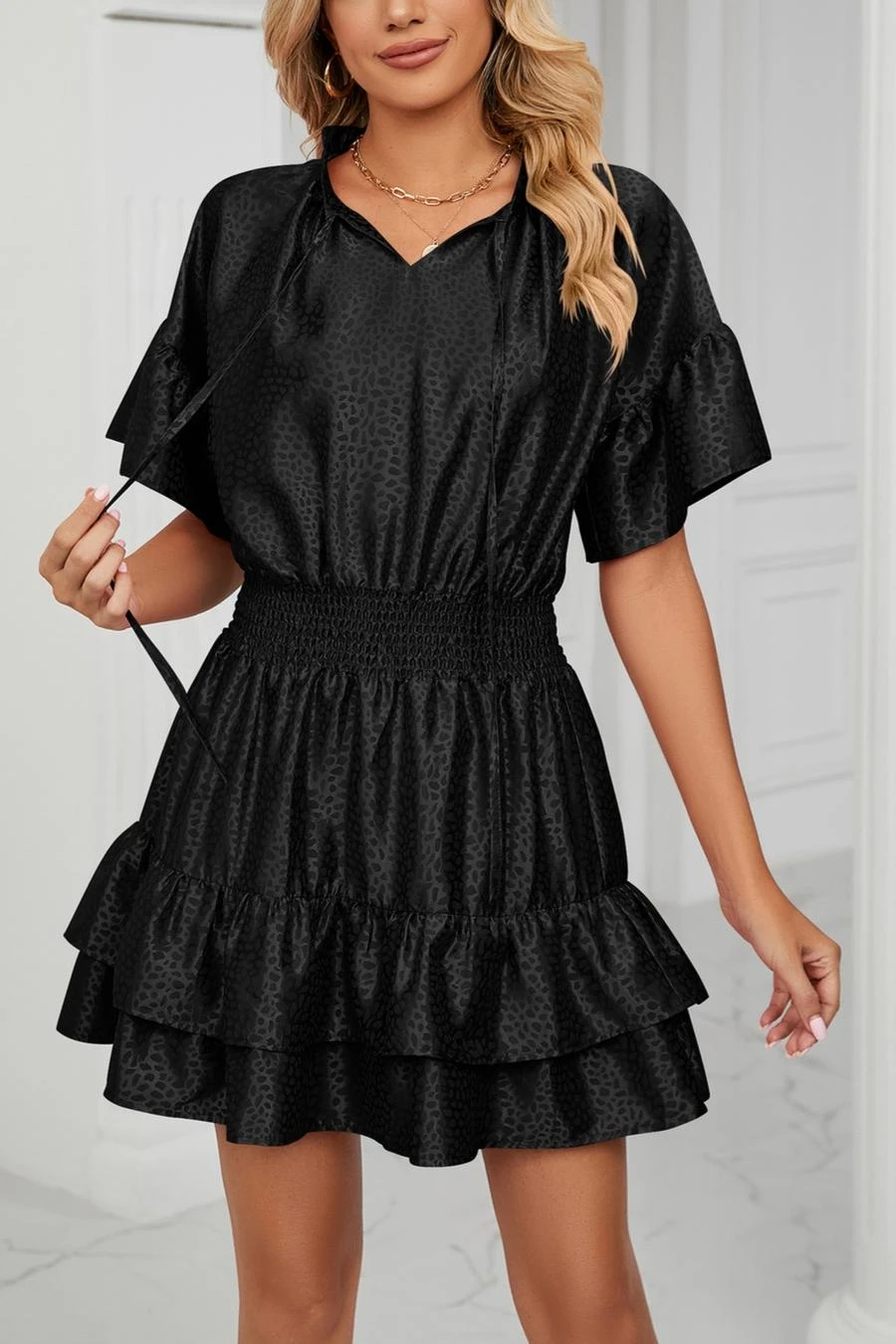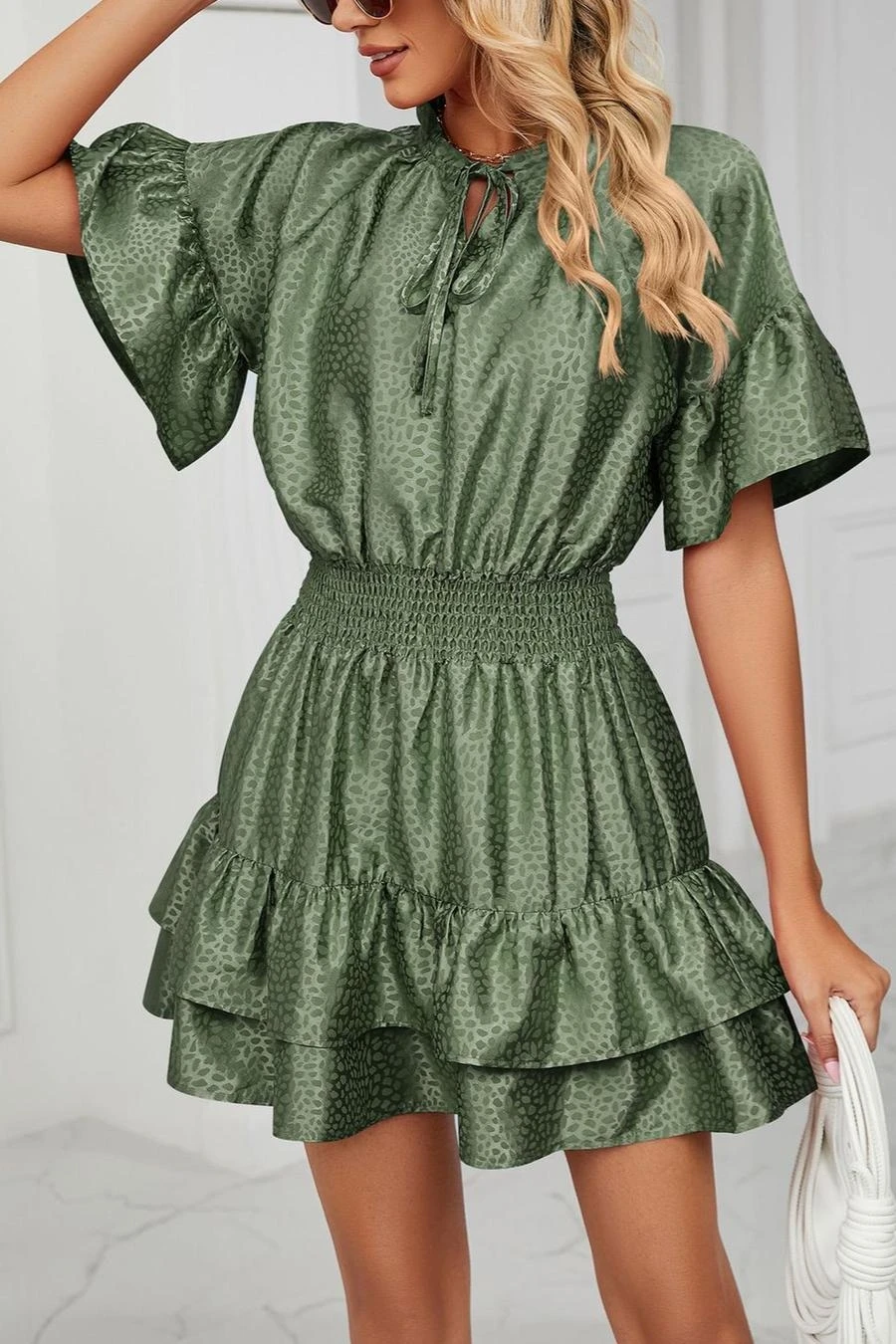 Casual plus size non-stretch satin 5 colors lace-up mini dress
