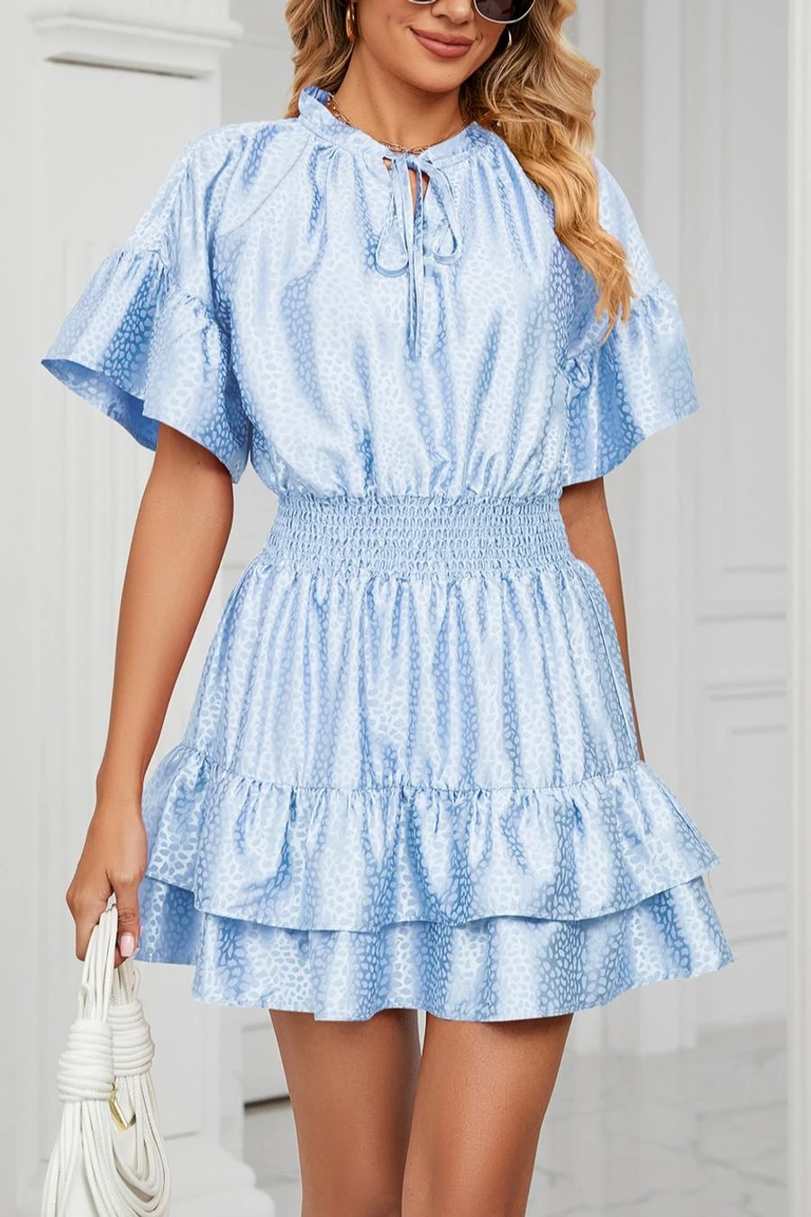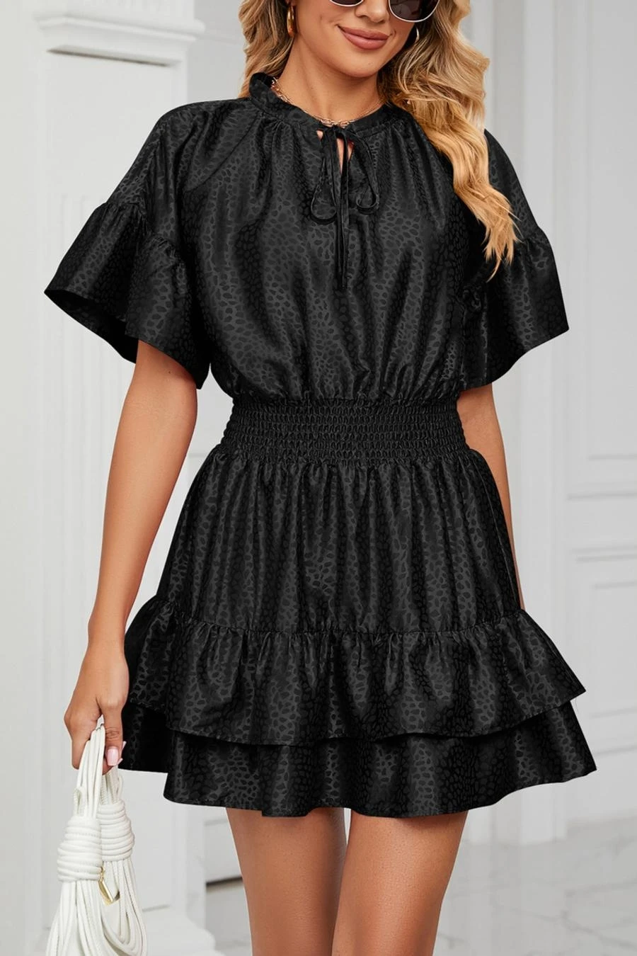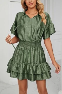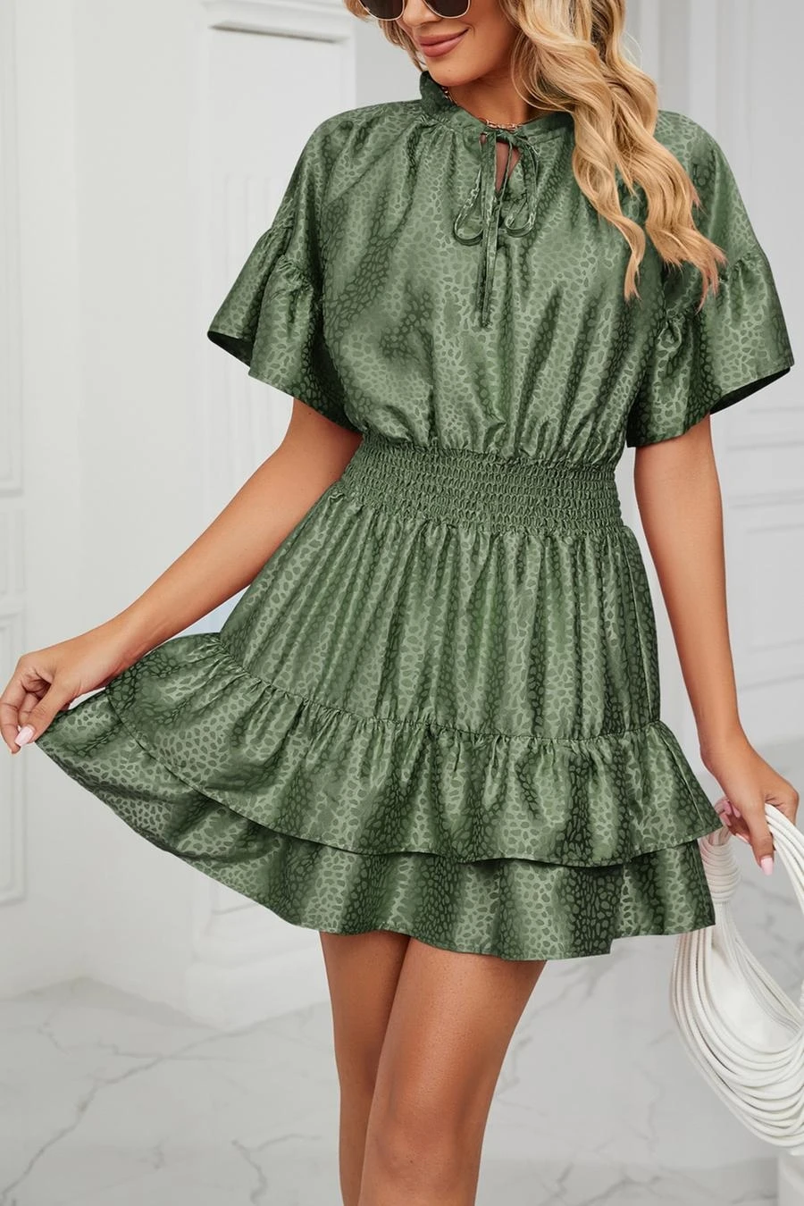 Casual plus size non-stretch satin 5 colors lace-up mini dress