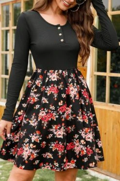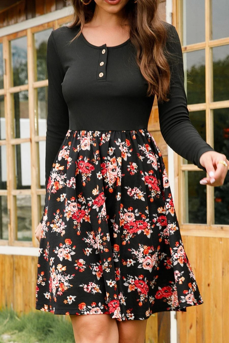 Casual plus size slight stretch floral printing long sleeve mini dress