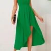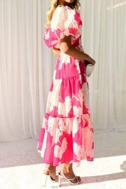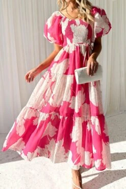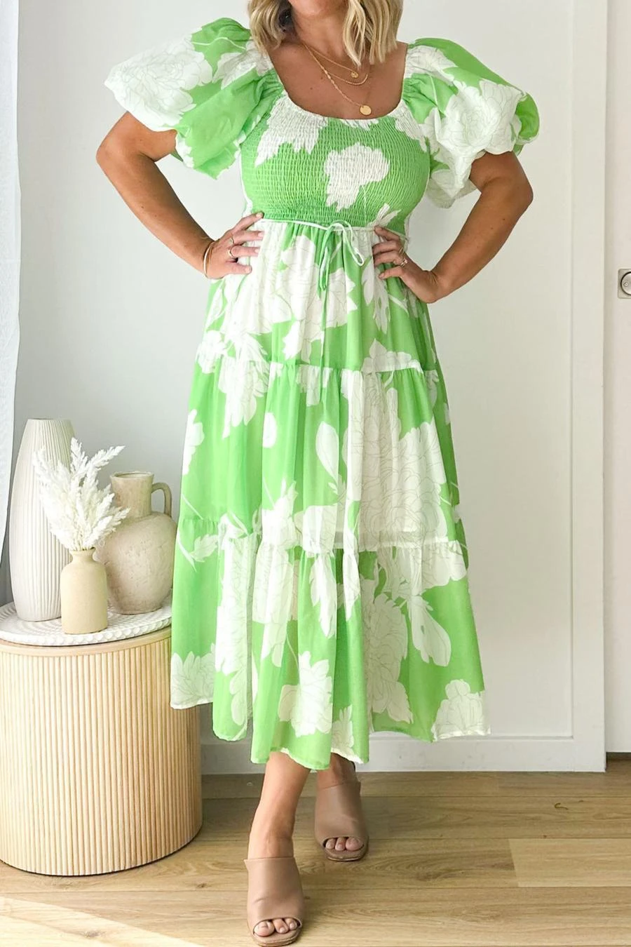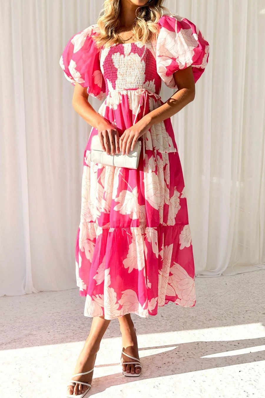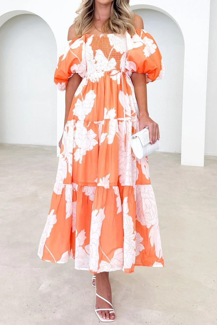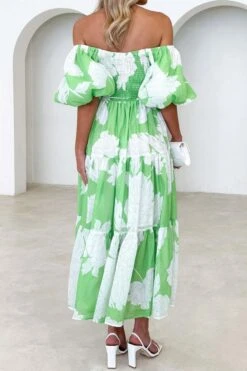 Casual slight stretch 3 colors flower batch printing off shoulder midi dress
