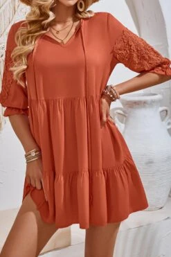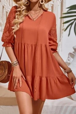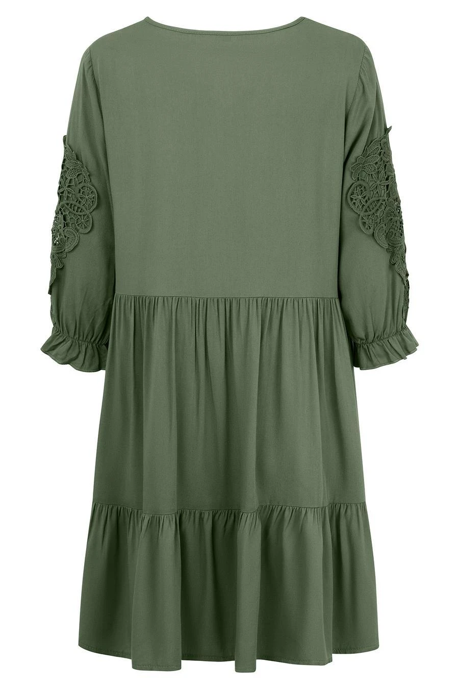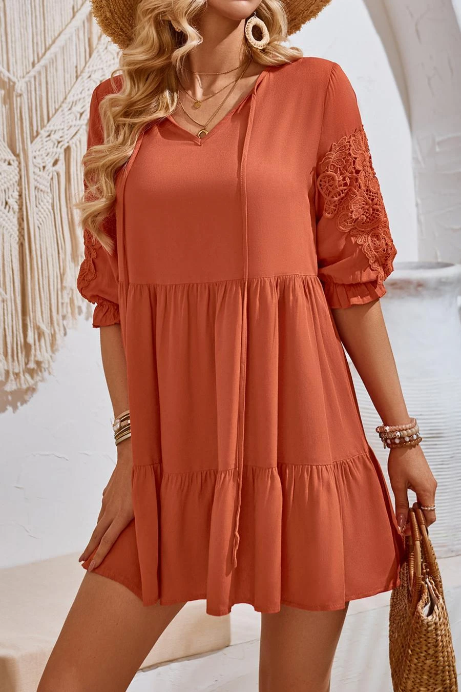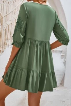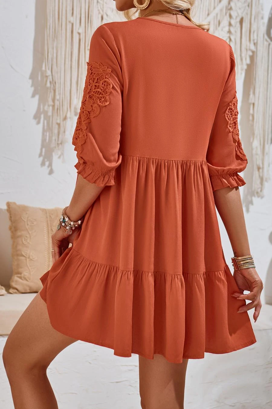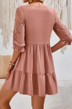 Casual slight stretch solid color embroidery pattern pinch pleated mini dress