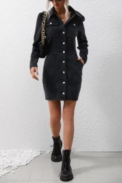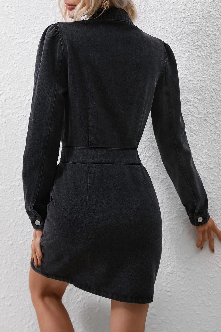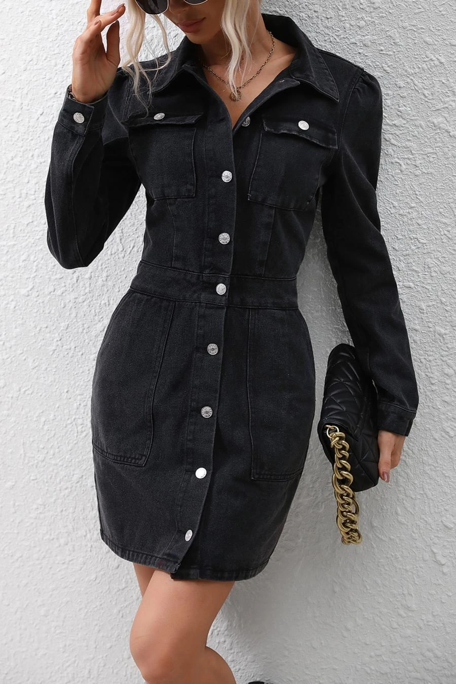 Casual xs-l solid color non-stretch single-breasted pocket denim mini dress