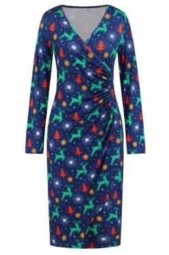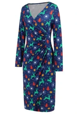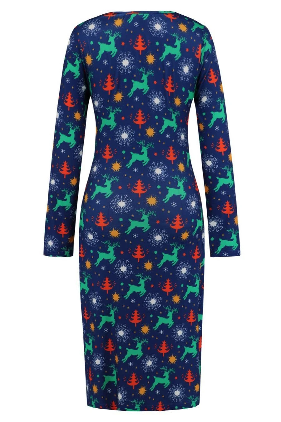 Christmas stylish plus size slight stretch deer batch print midi dress