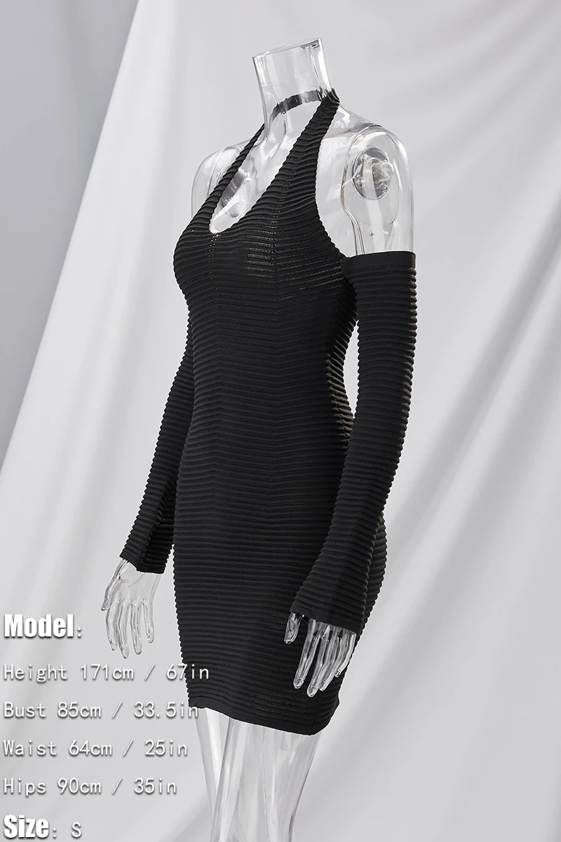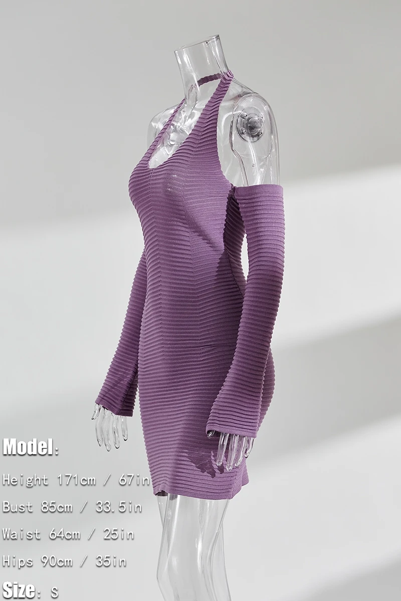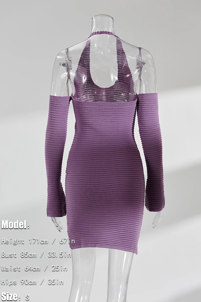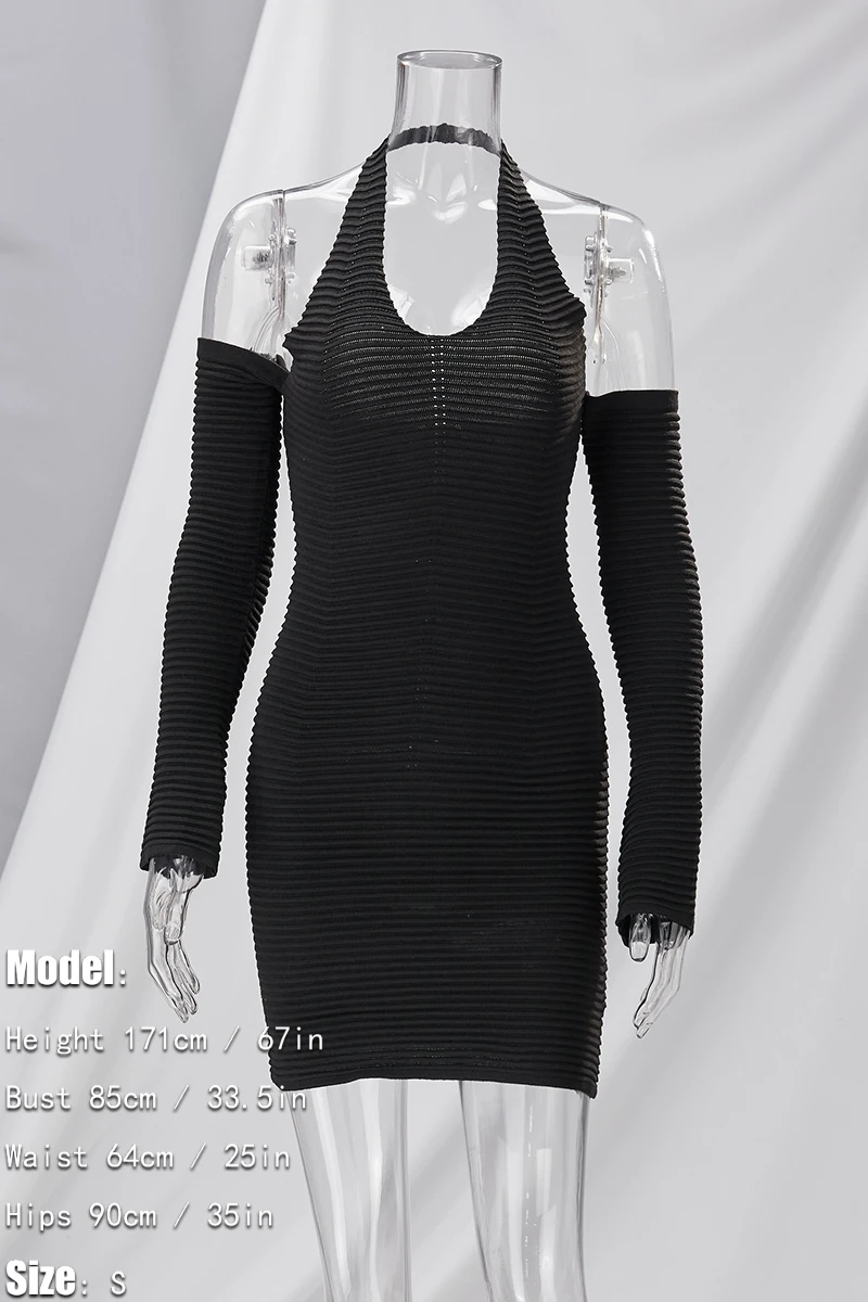 Early autumn new stylish 7-colors solid color halter neck backless high stretch slim knitted sexy mini dress