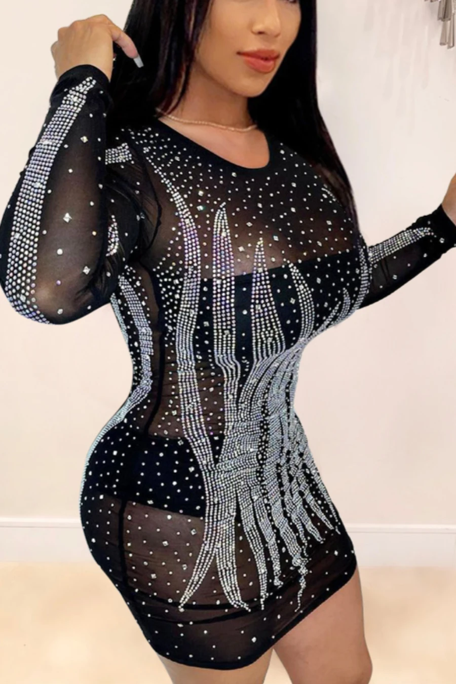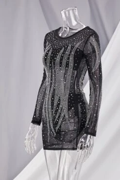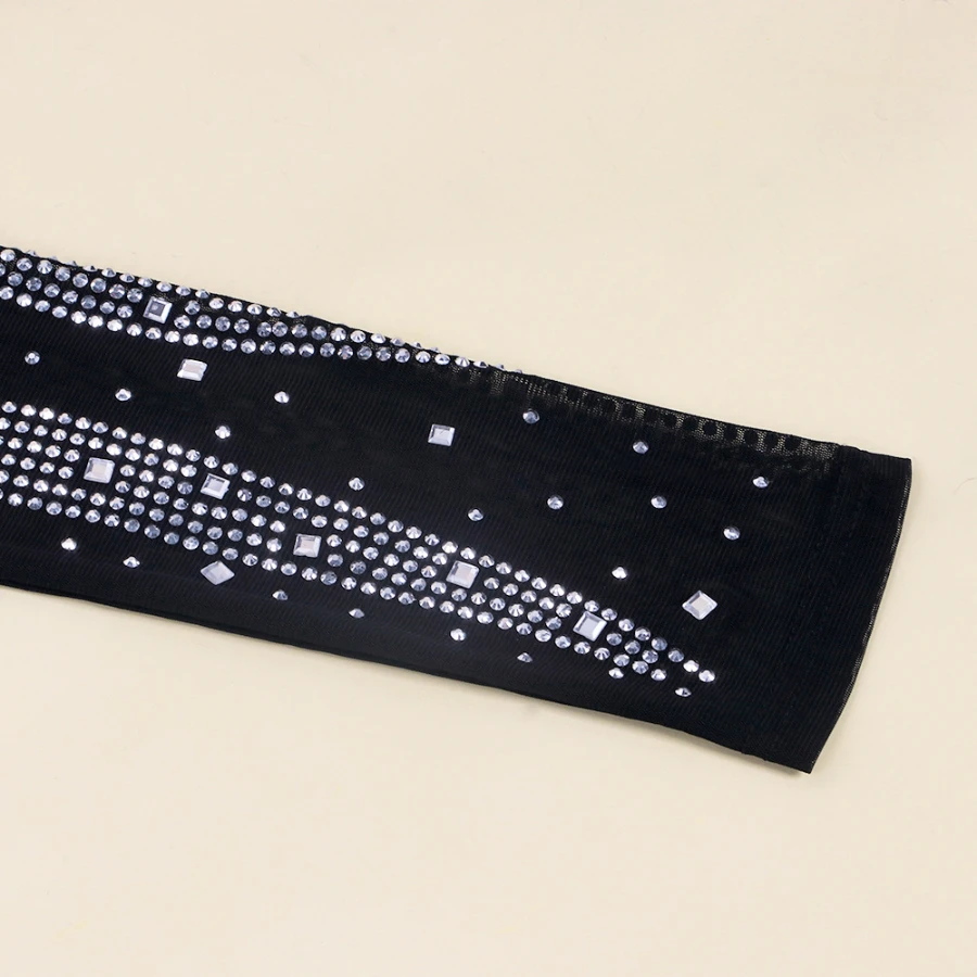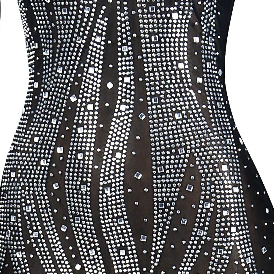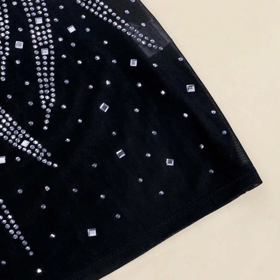 Early autumn new stylish plus size stretch rhinestone slim mesh see-through sexy mini dress
