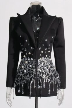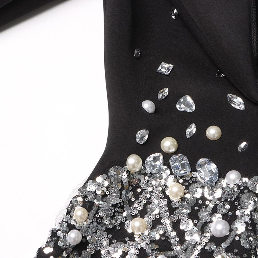 Elegant non-stretch sequins pearl rhinestone high quality mini suit dress