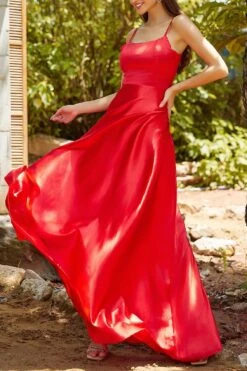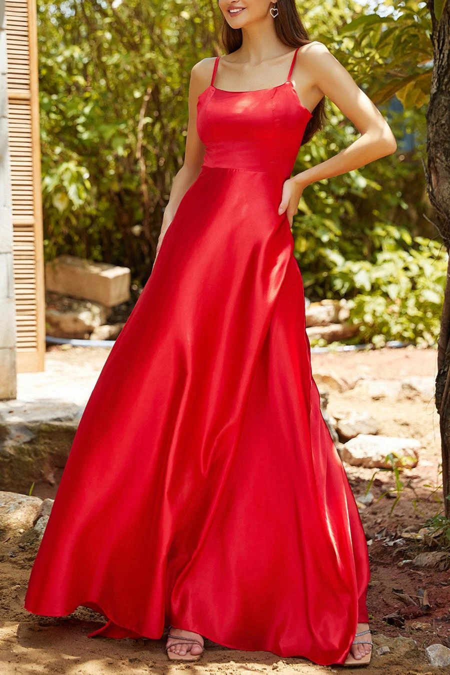 Elegant non-stretch solid color sling backless zip-up maxi dress