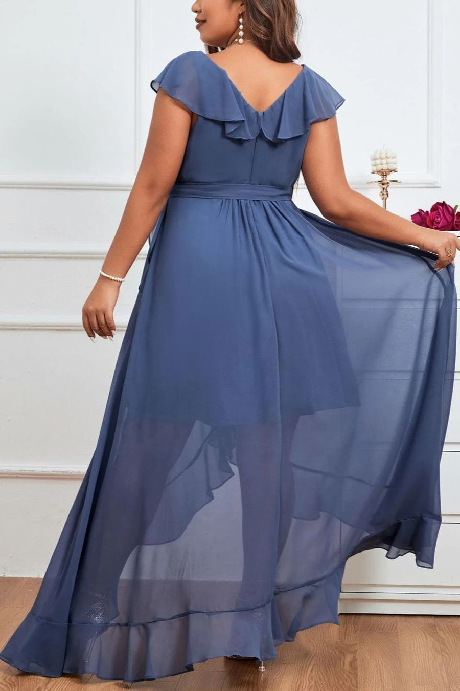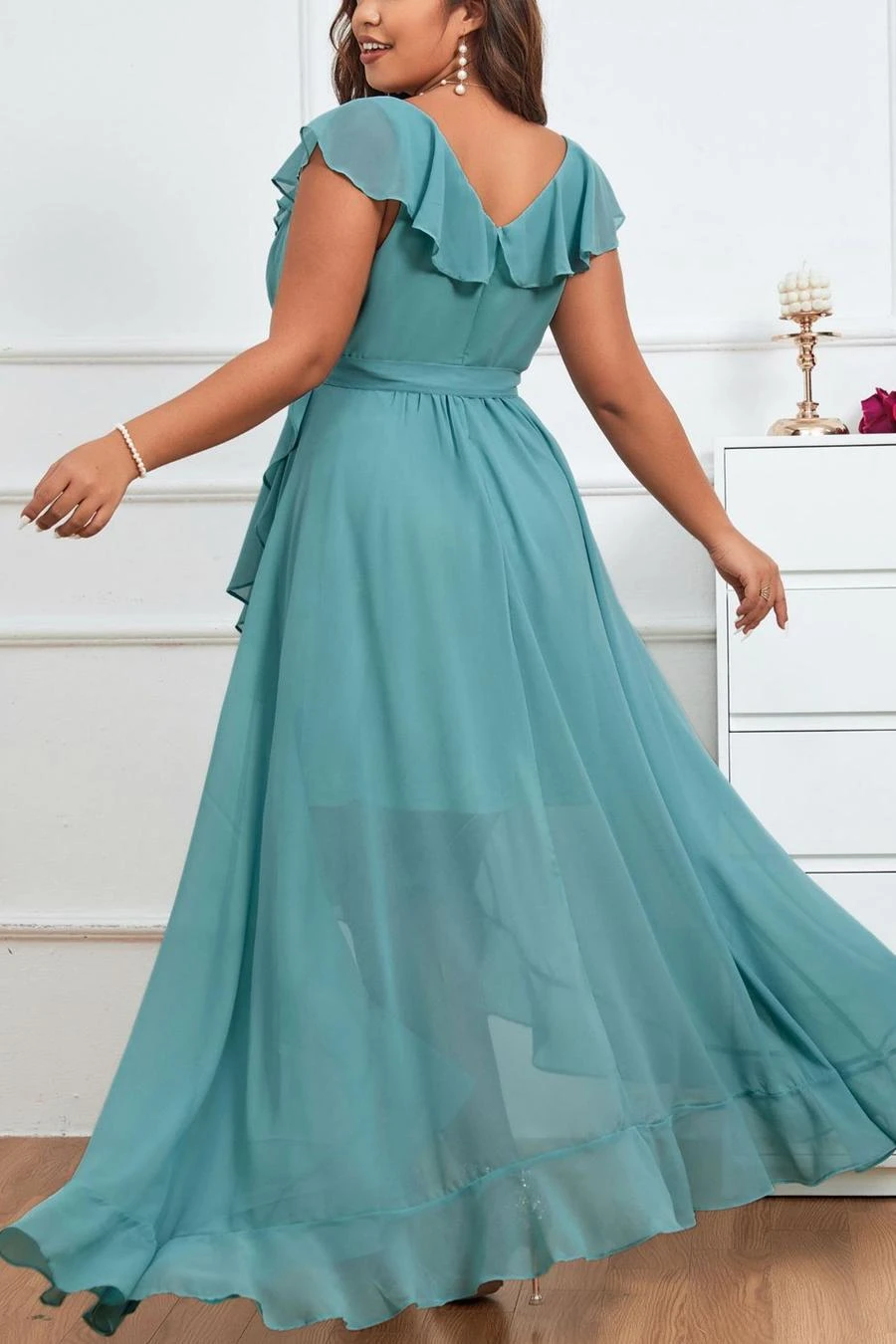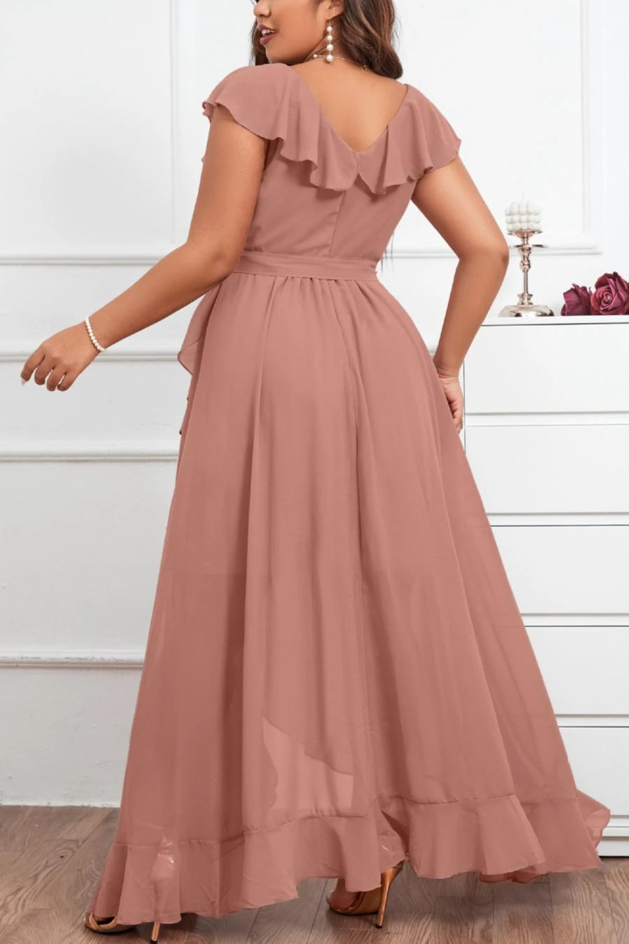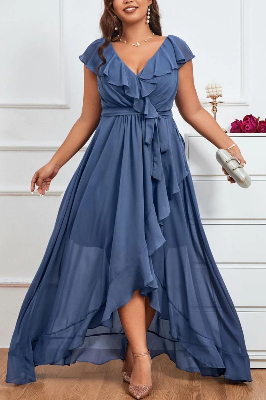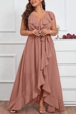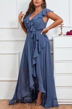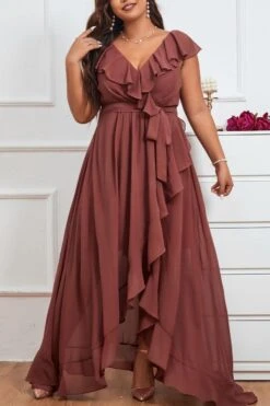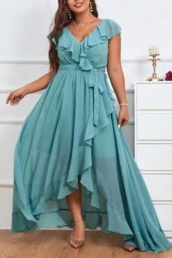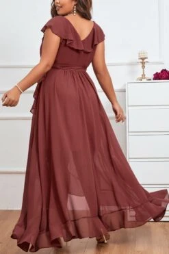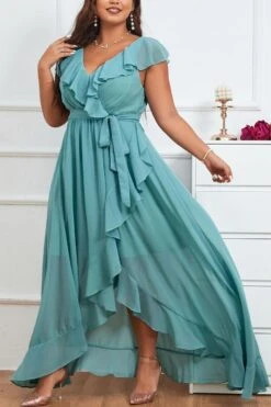Elegant plus size non-stretch chiffon v-neck sling slit maxi dress