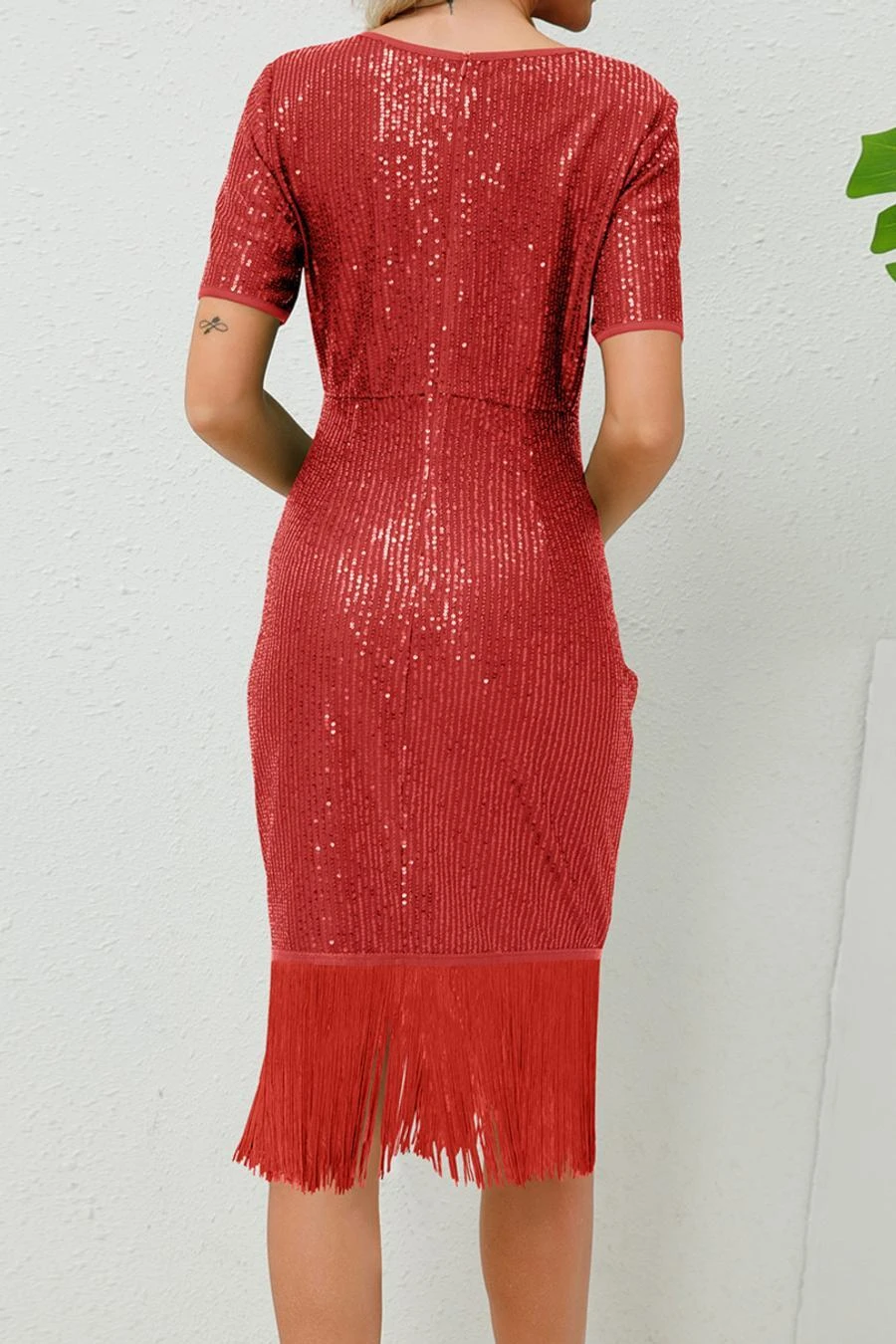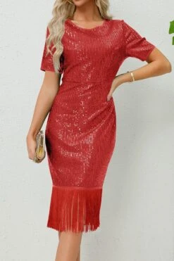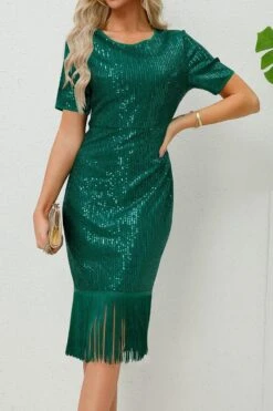 Elegant plus size slight stretch tassels sequin midi dress
