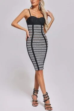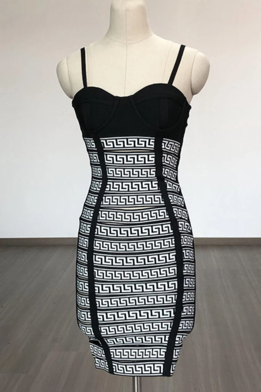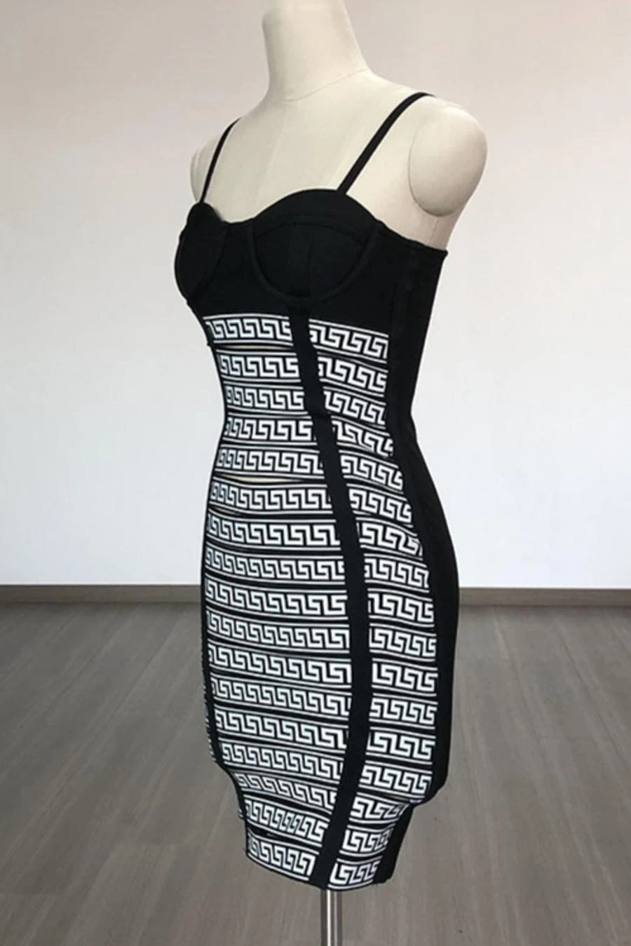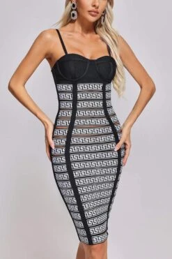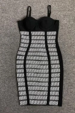 Elegant slight stretch geometric graphic jacquard padded underwire midi dress