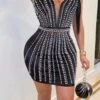 Elegant slight stretch solid color glitter high slit v-neck maxi dress