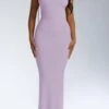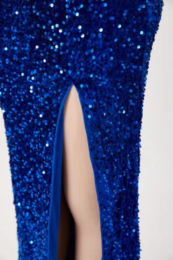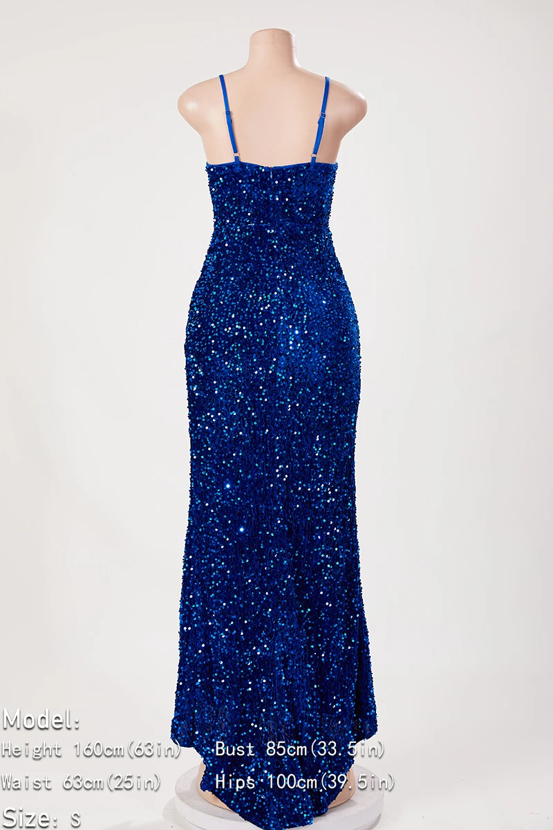 Elegant slight stretch solid color sling hollow sequins high slit maxi dress