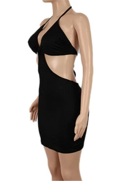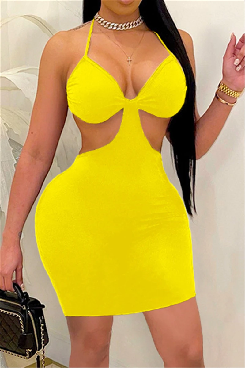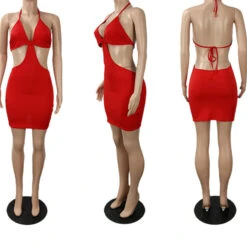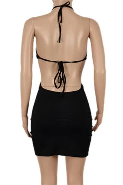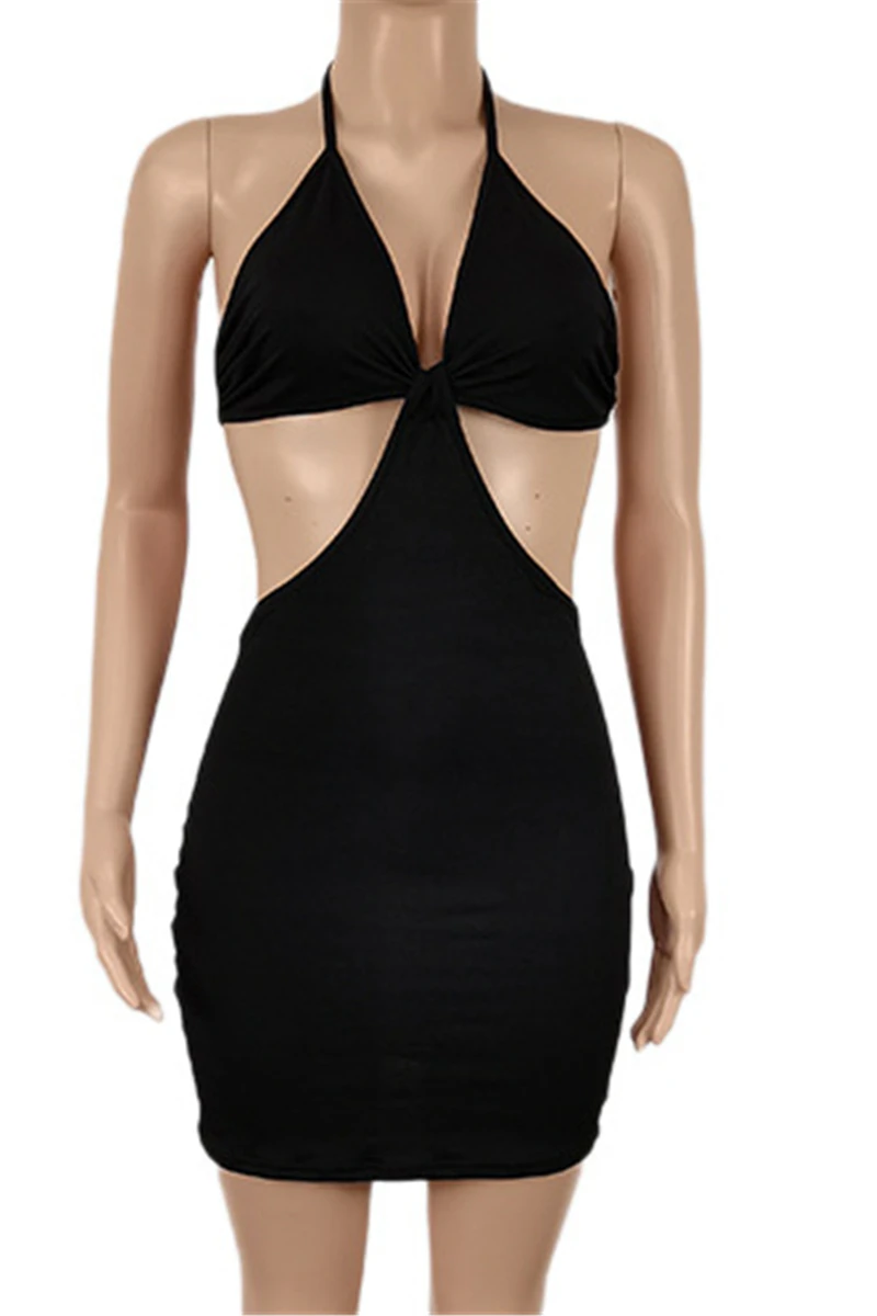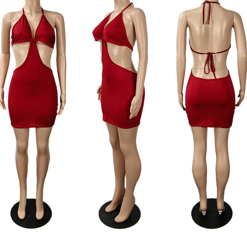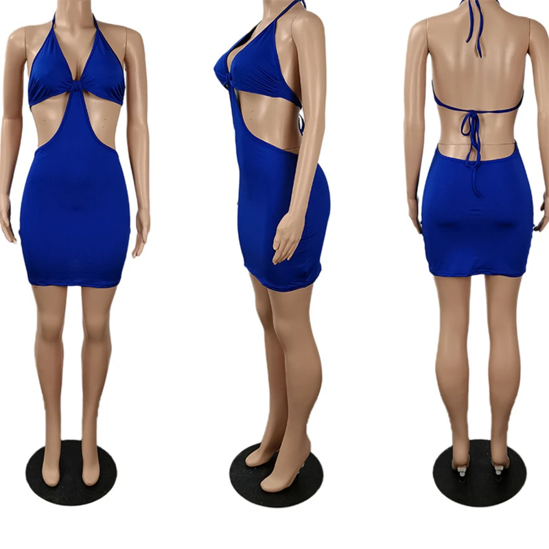 Five colors plus size new style solid color backless lace-up fashion slim mini dress