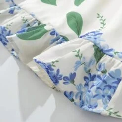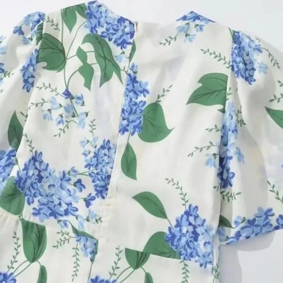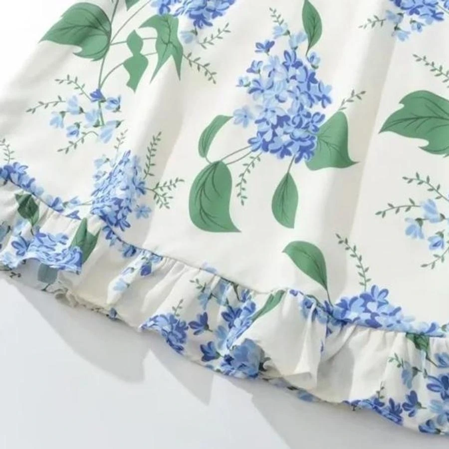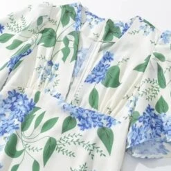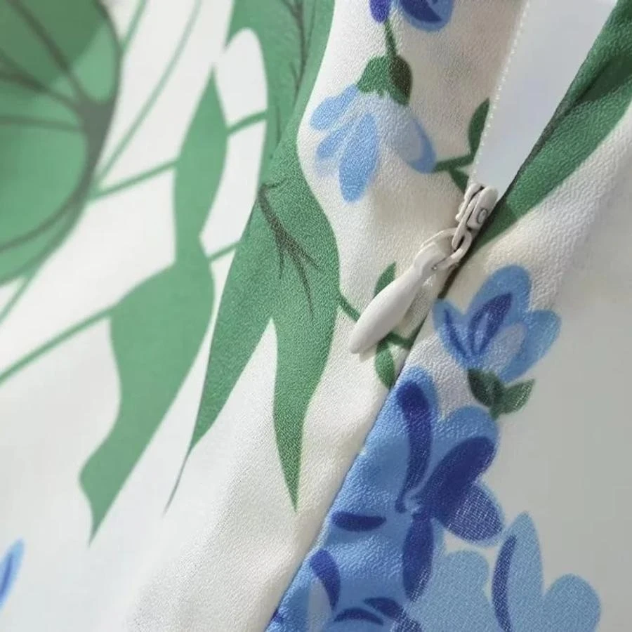 Floral batch printing non-stretch chiffon ruffle zip-up casual mini dress