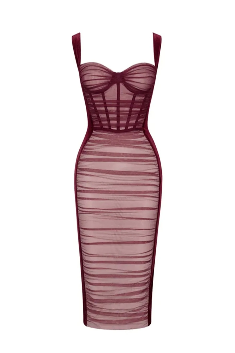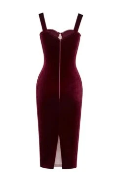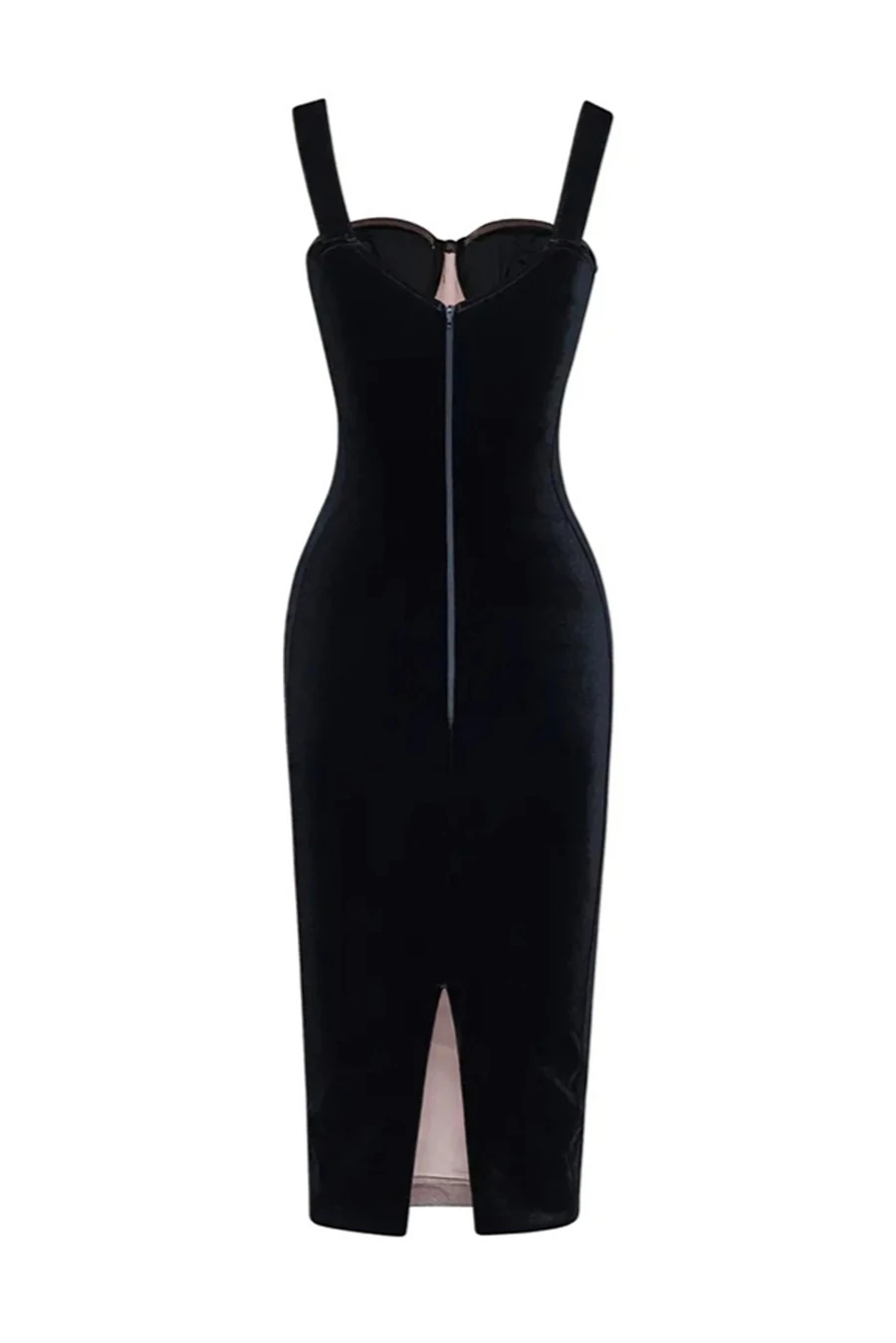 High stretch sling zip-up slit slim mesh velvet boned shirring sexy midi dress