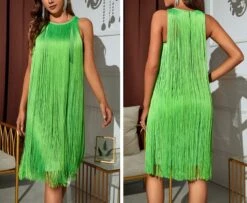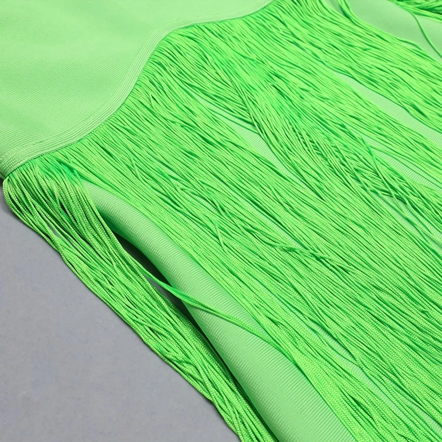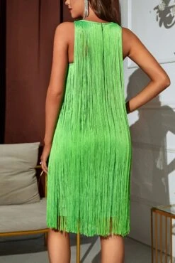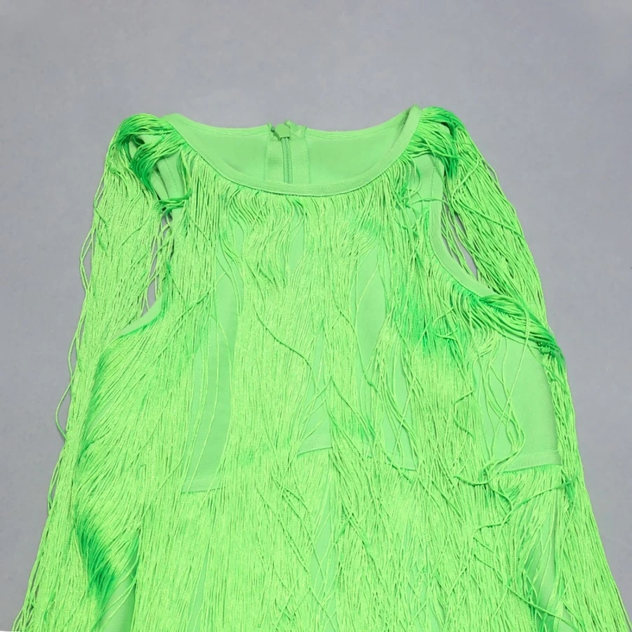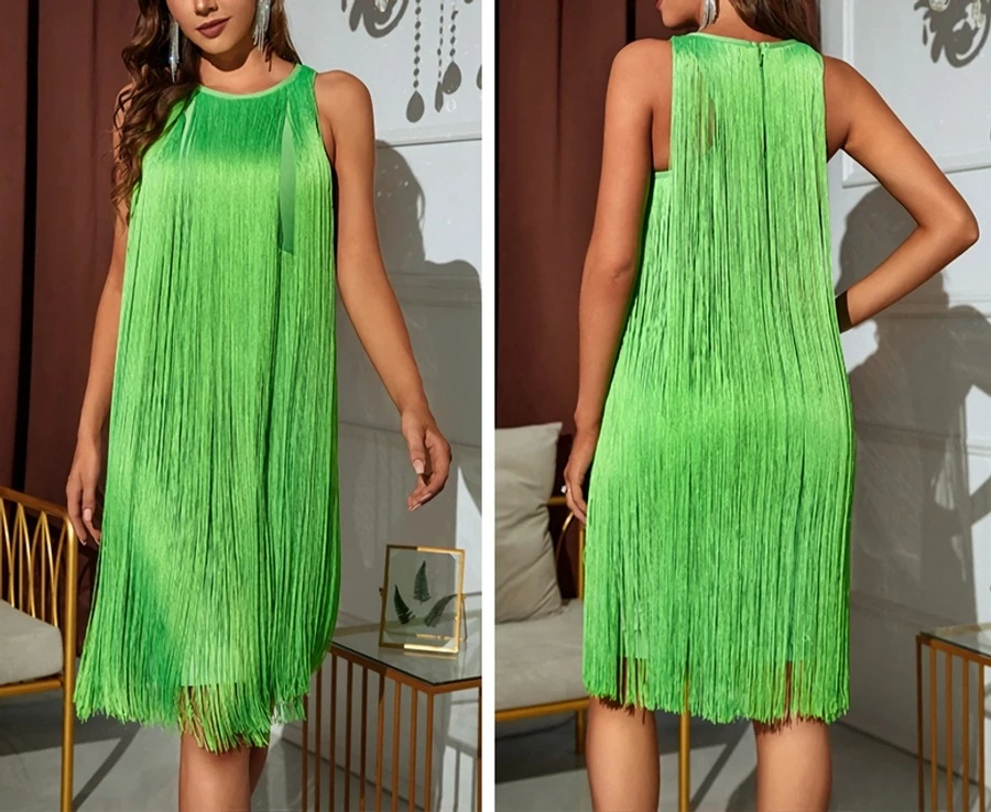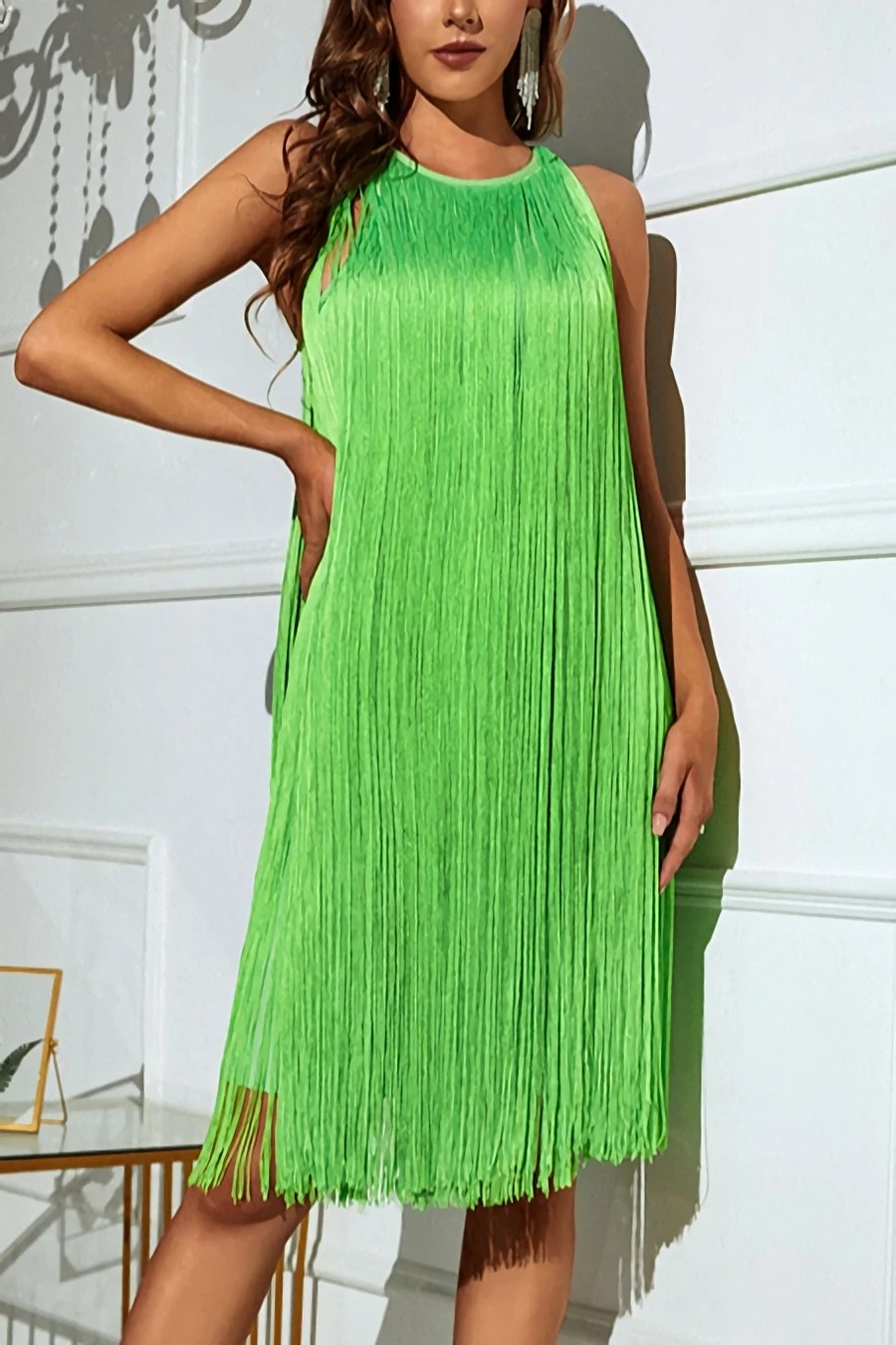 High stretch solid color tassel zip-up light luxury stylish midi dress