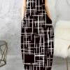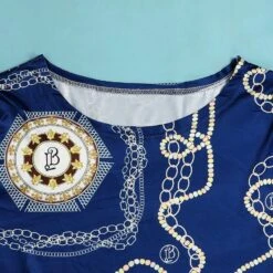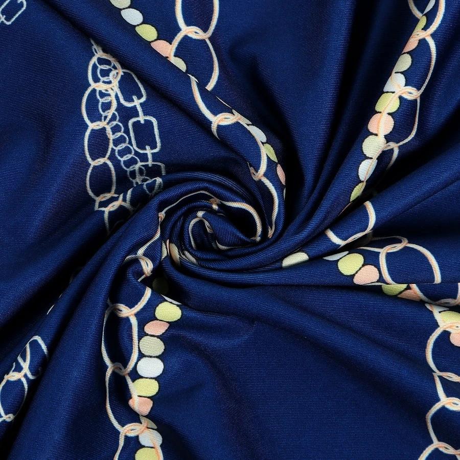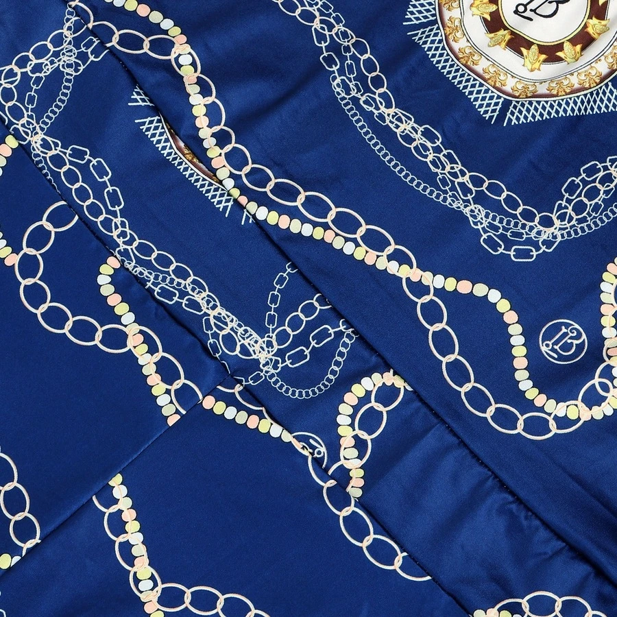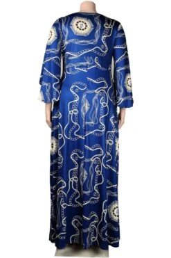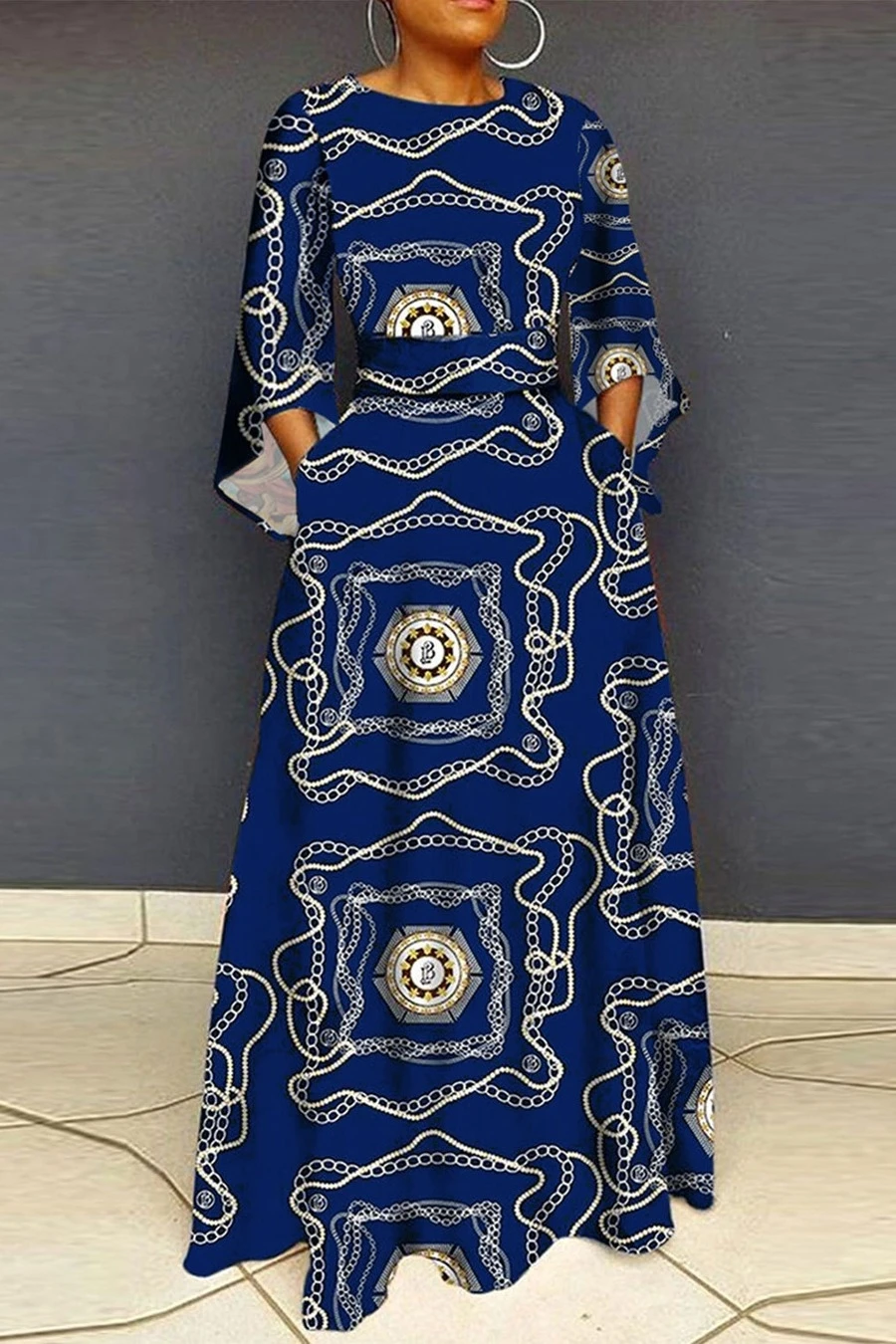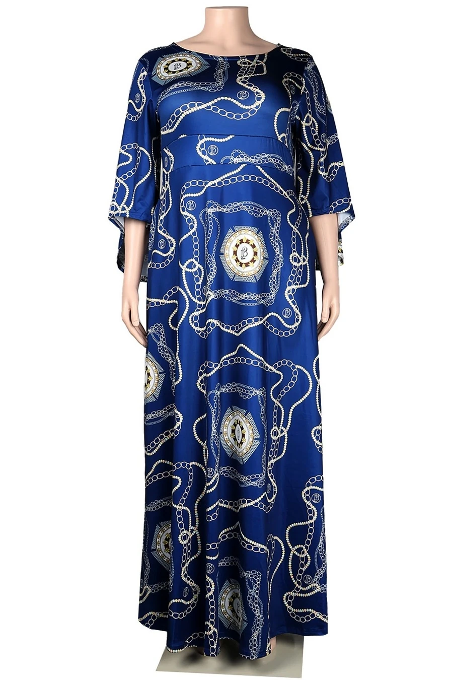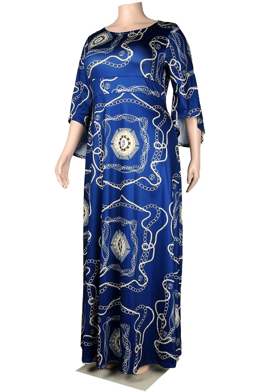 L-3XL plus size autumn new stylish chain batch printing crew neck long sleeve slight stretch casual maxi dress