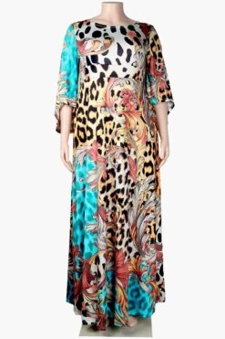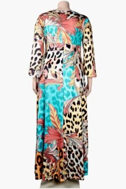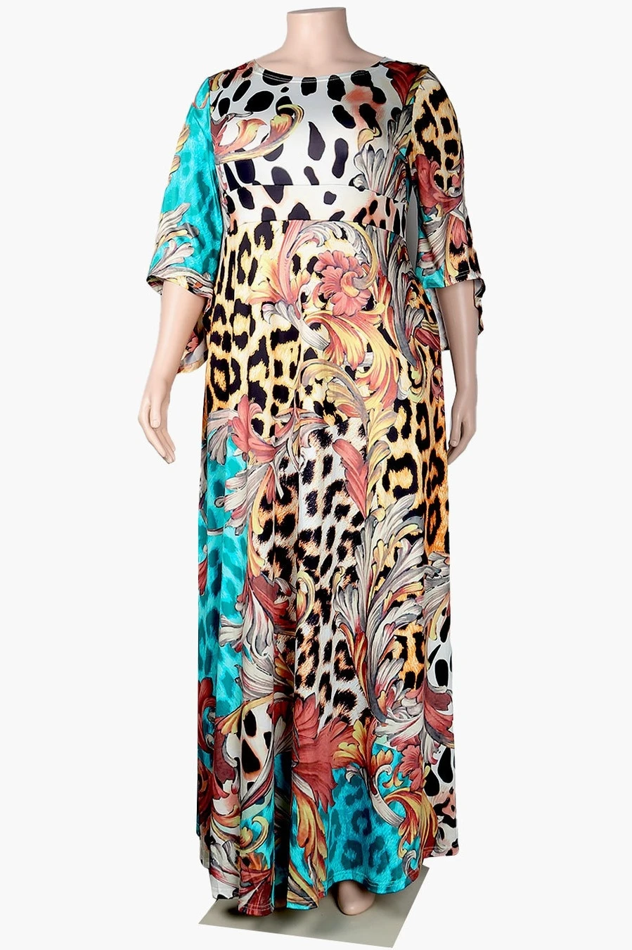 L-3XL plus size autumn new stylish leopard batch printing crew neck long sleeve slight stretch casual maxi dress