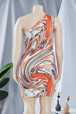 L-4XL Plus size sexy batch printing one shoulder slim drawstring mini dress