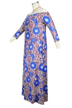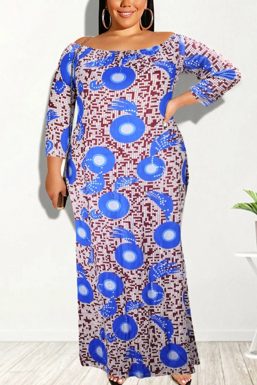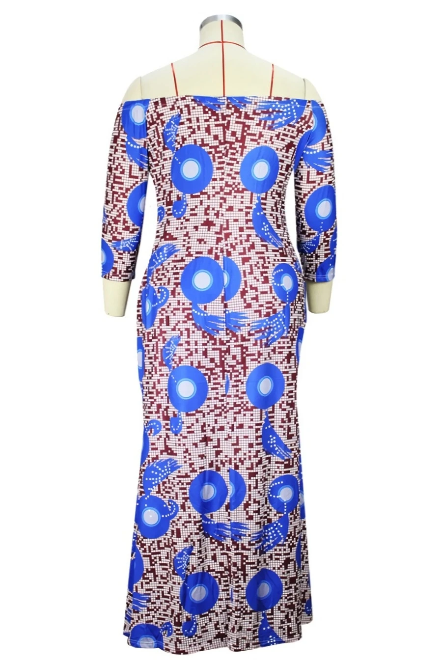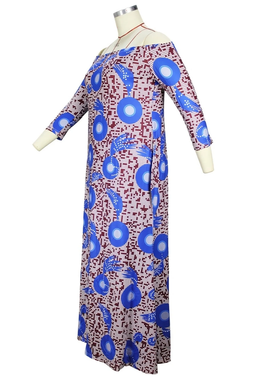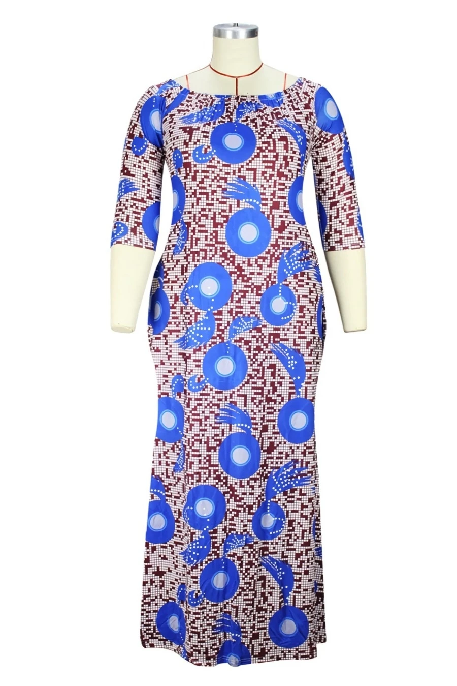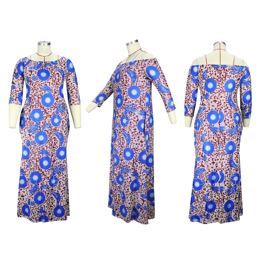 L-5XL plus size spring new batch printing stretch three quarter sleeves off-the-shoulder loose casual maxi dress