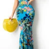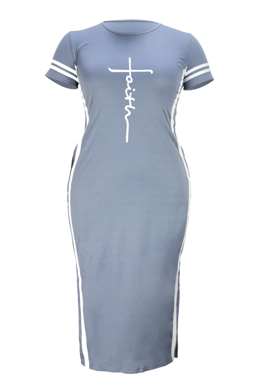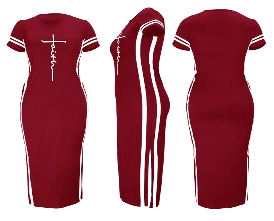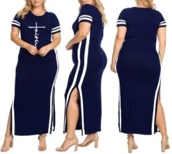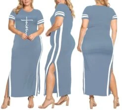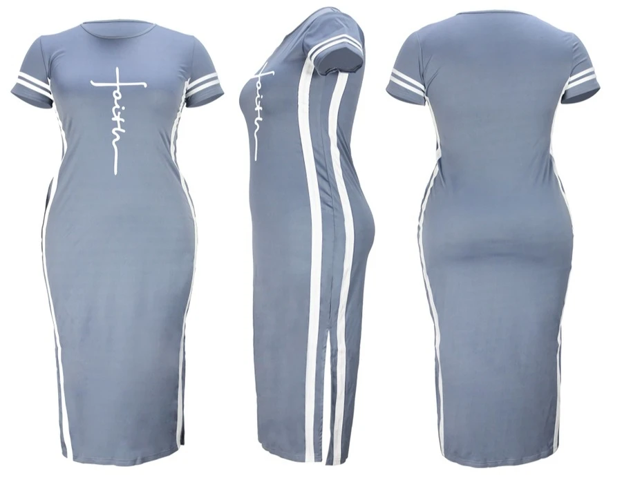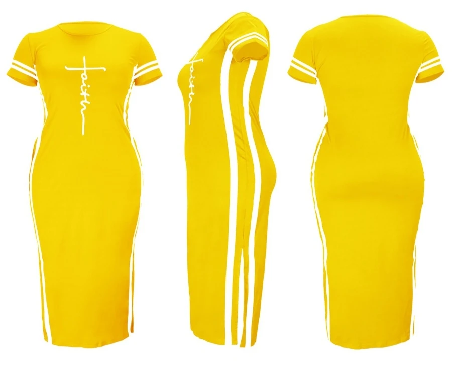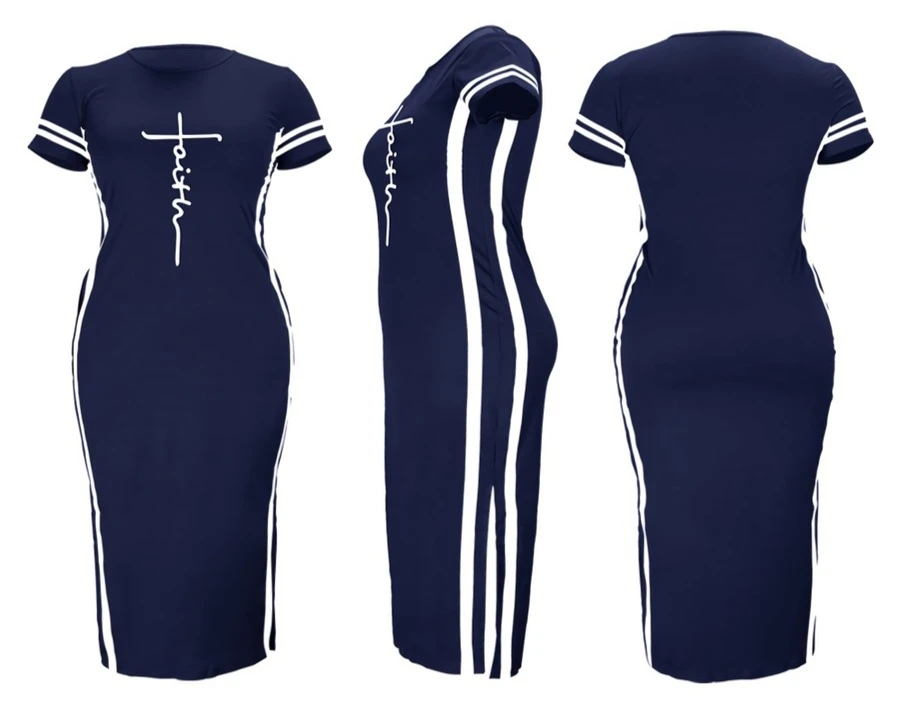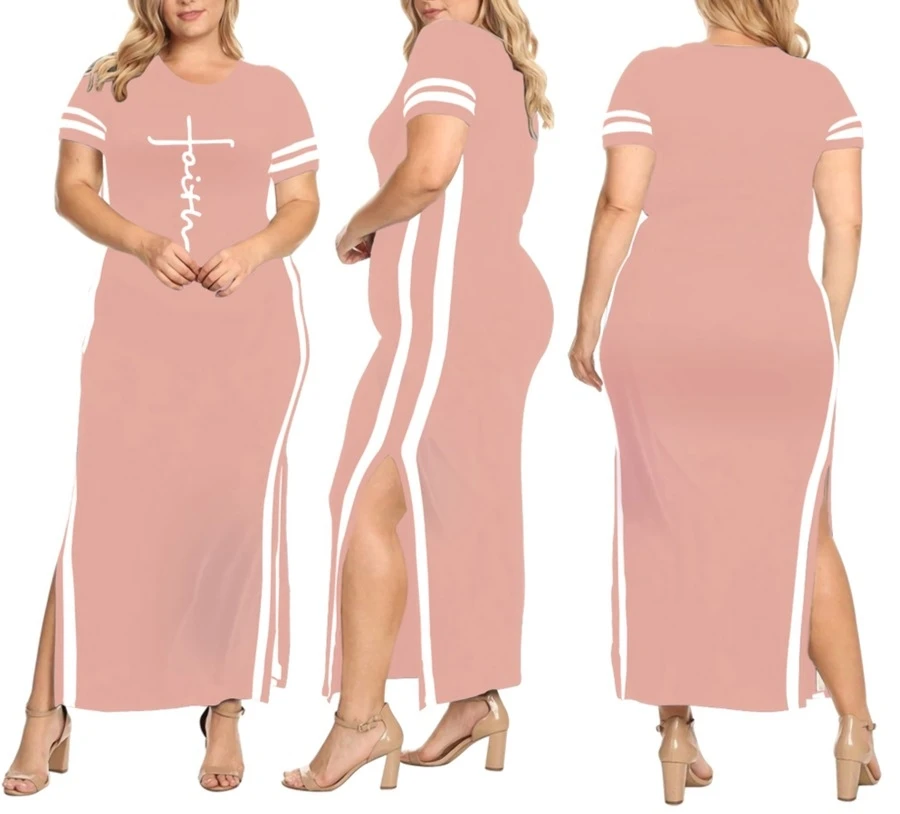 L-5XL plus size summer new stylish simple letter printing loose 6 colors contrast color slit casual maxi dress