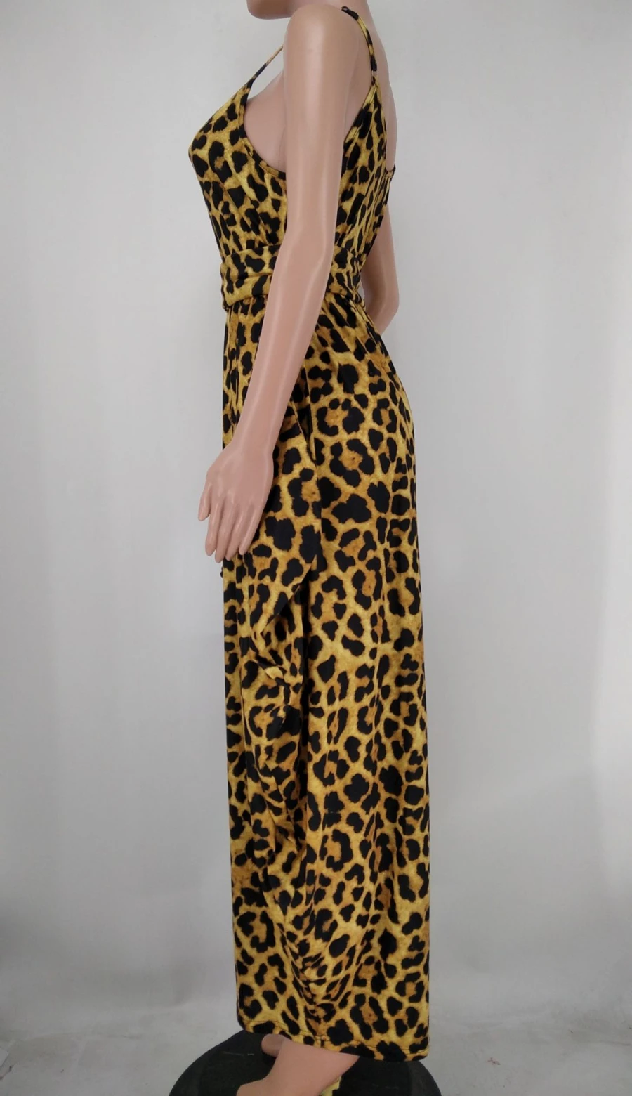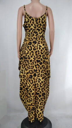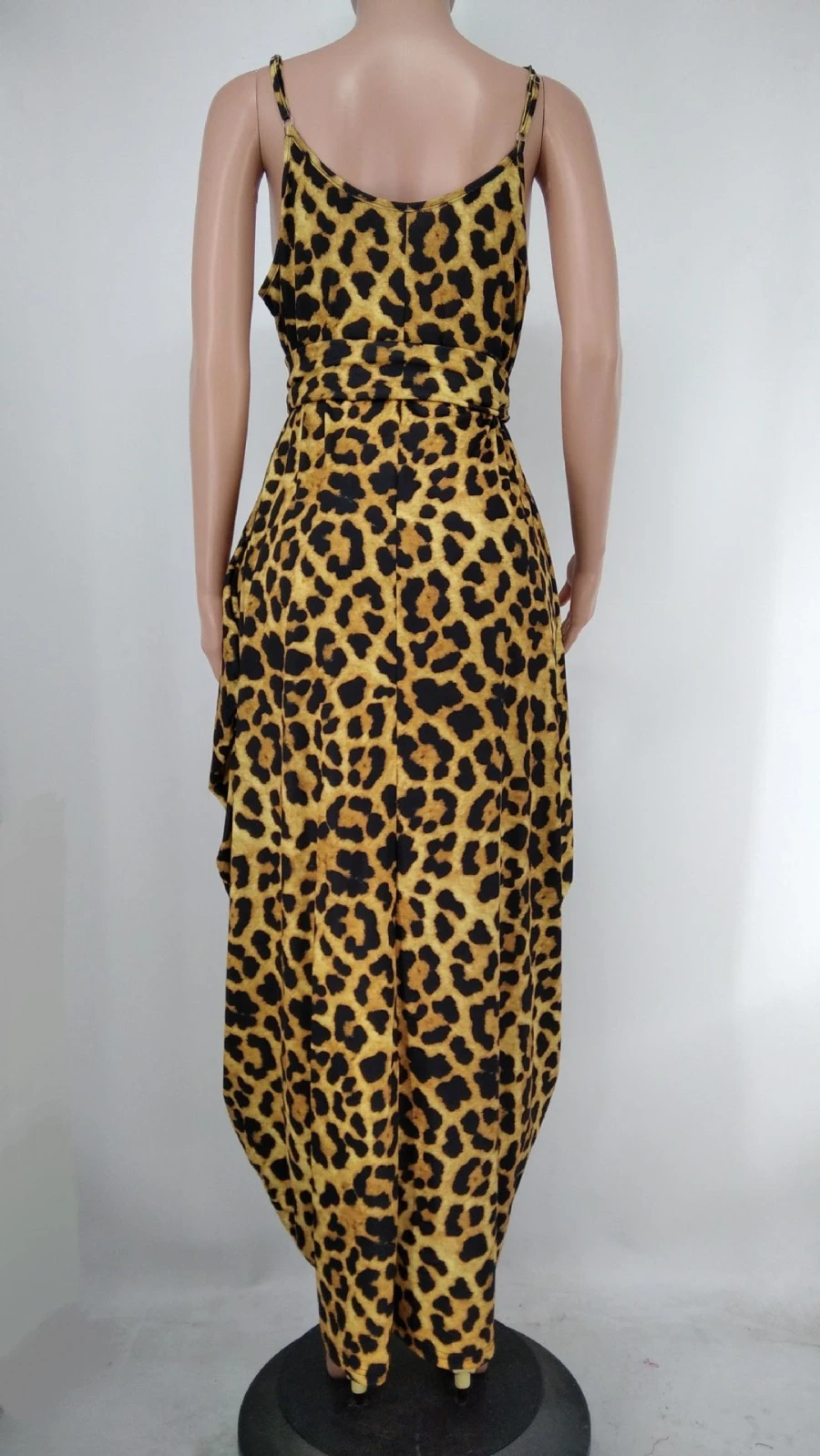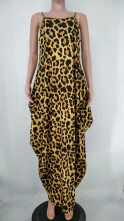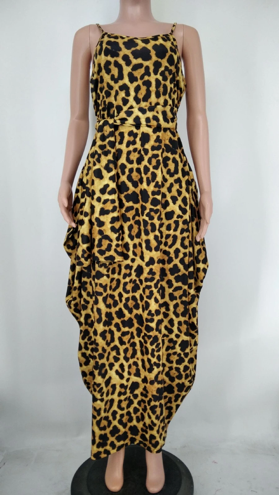 L-5XL summer leopard printing stretch adjustable straps loose sexy maxi dress with belt