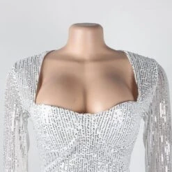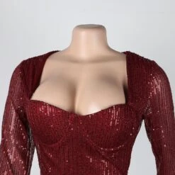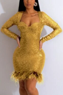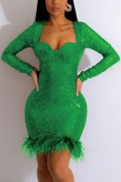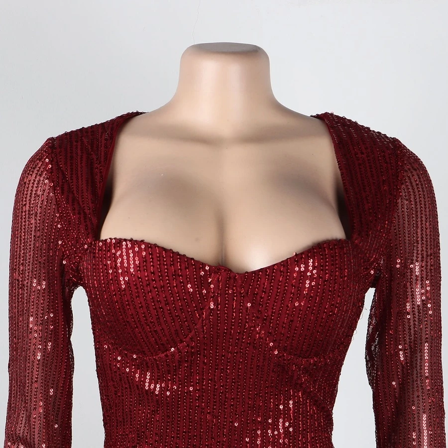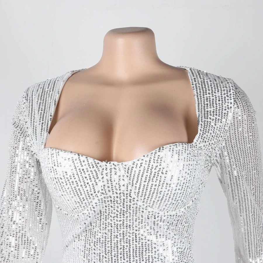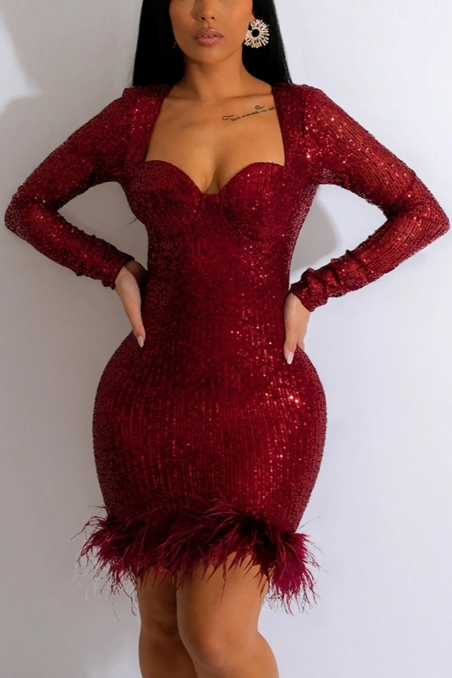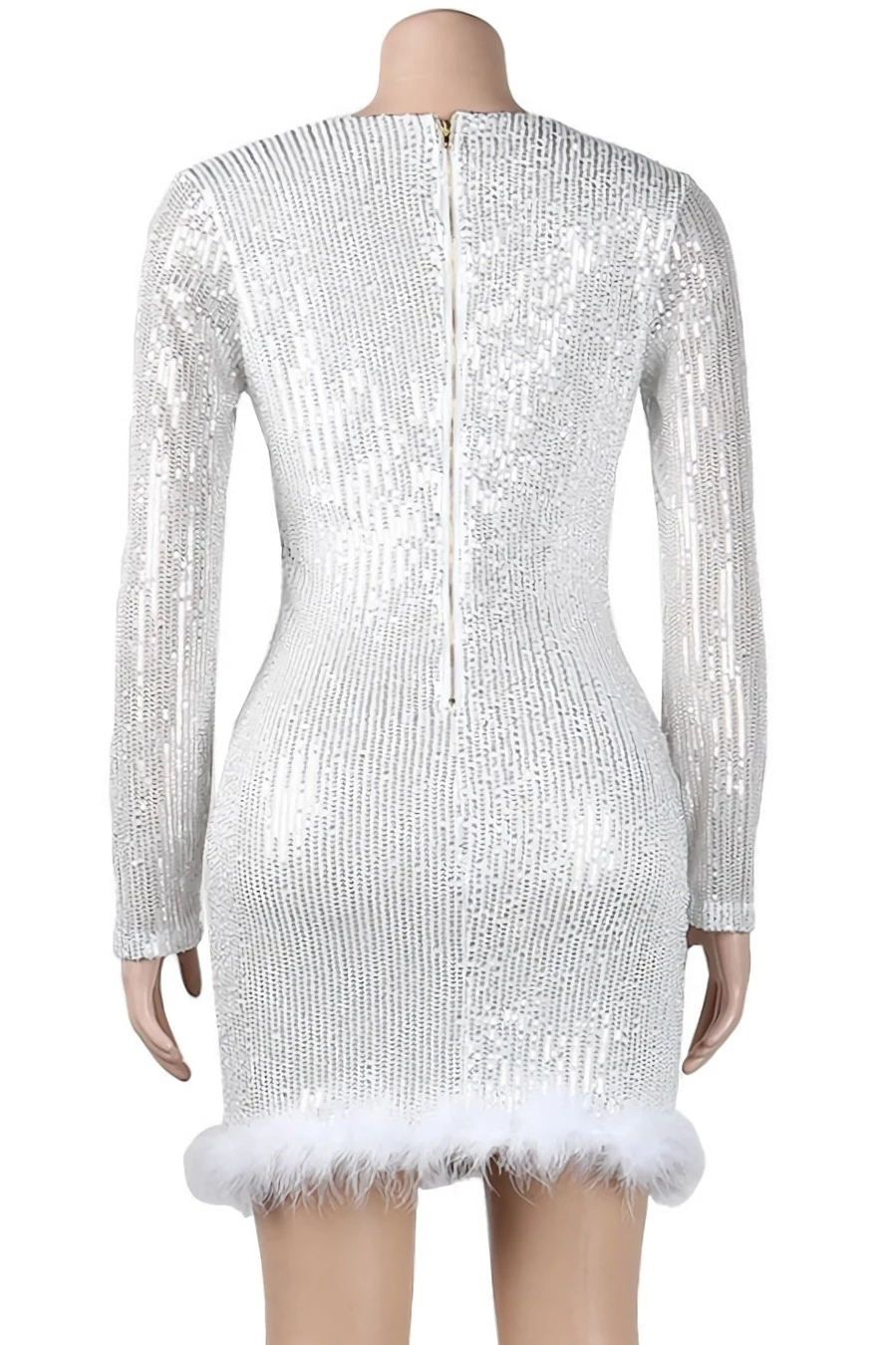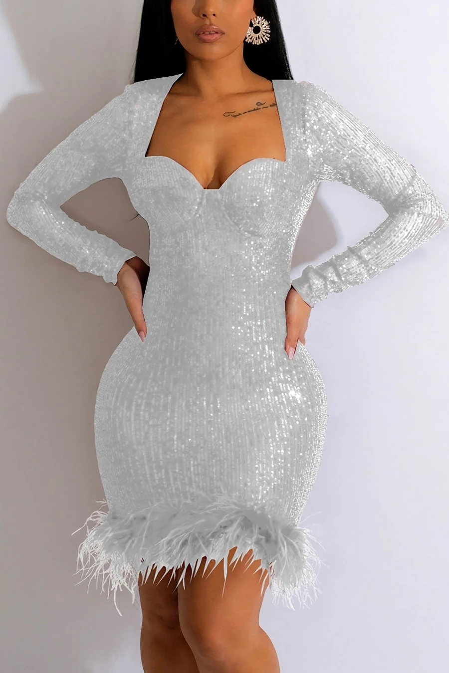 M-2XL plus size sequin fuzzy decor square neck slight stretch sexy mini dress