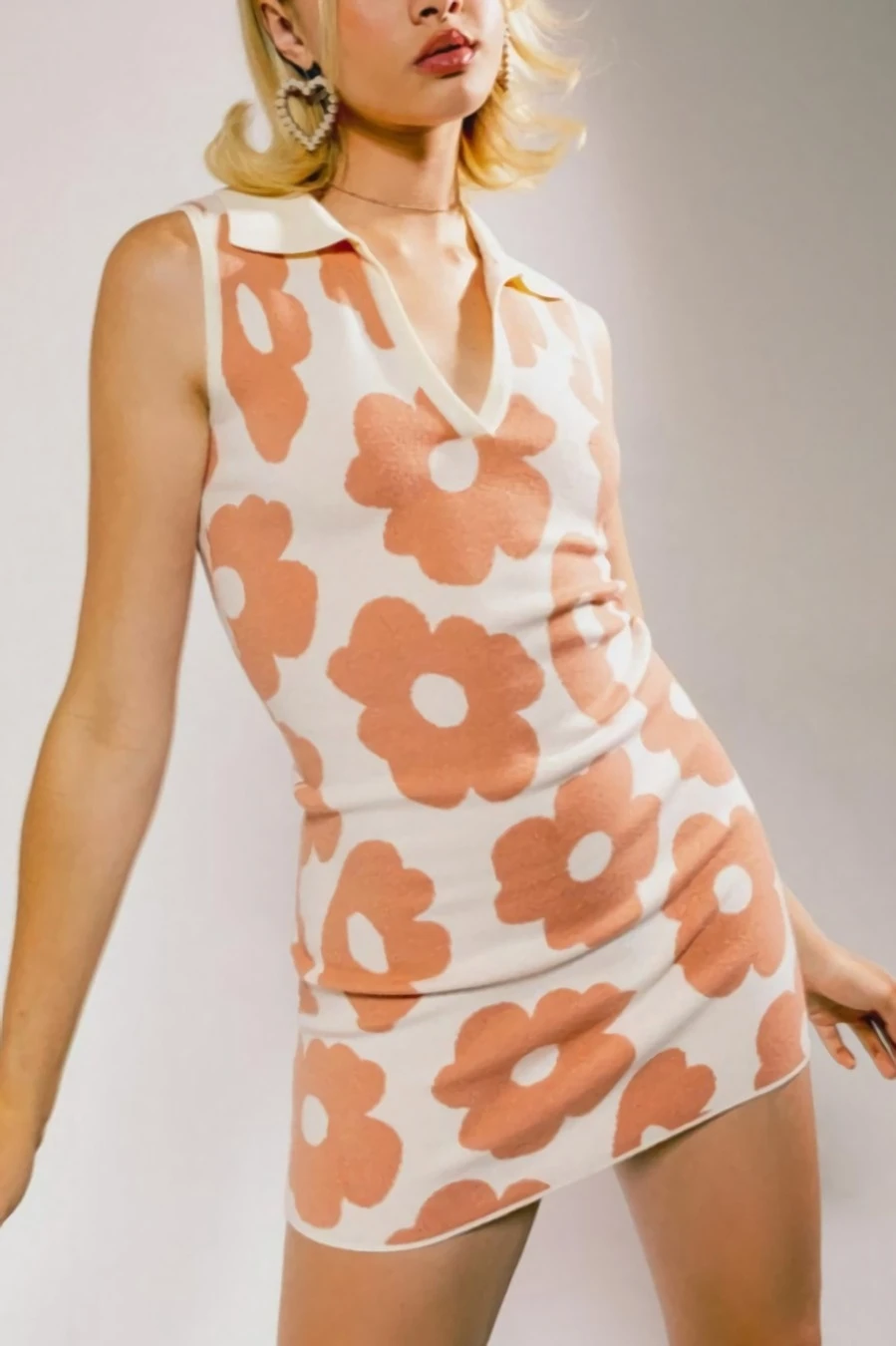 Made by girlmerry summer new two colors flower pattern knitted stretch turndown collar sleeveless sexy bodycon mini dress